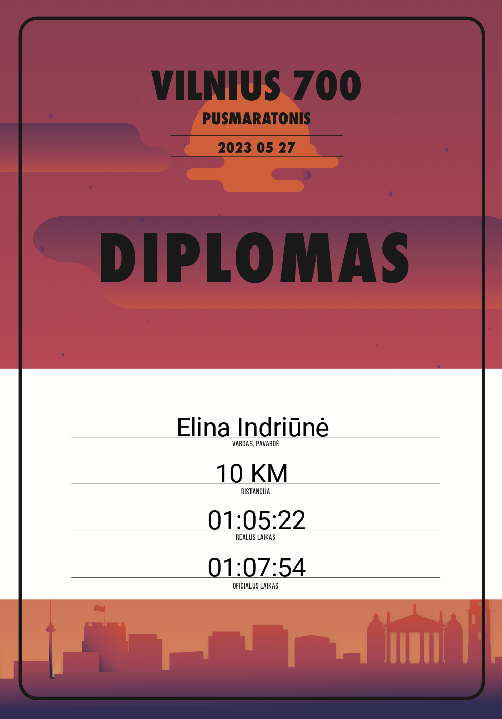 | 759 | Elina Indriūnė | 20396 | Lithuania | 10 KM | 01:07:54 | Diplomas | |