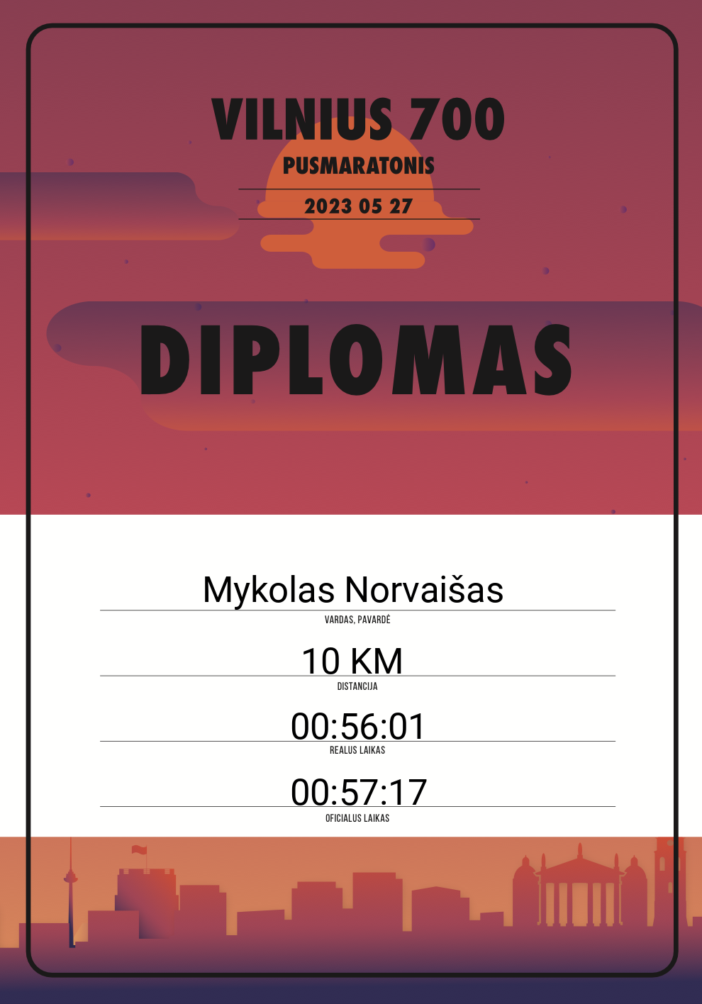 | 682 | Karolis Dobrovolskis | 10759 | Lithuania | 21,098 KM | 02:08:44 | Diplomas | |
