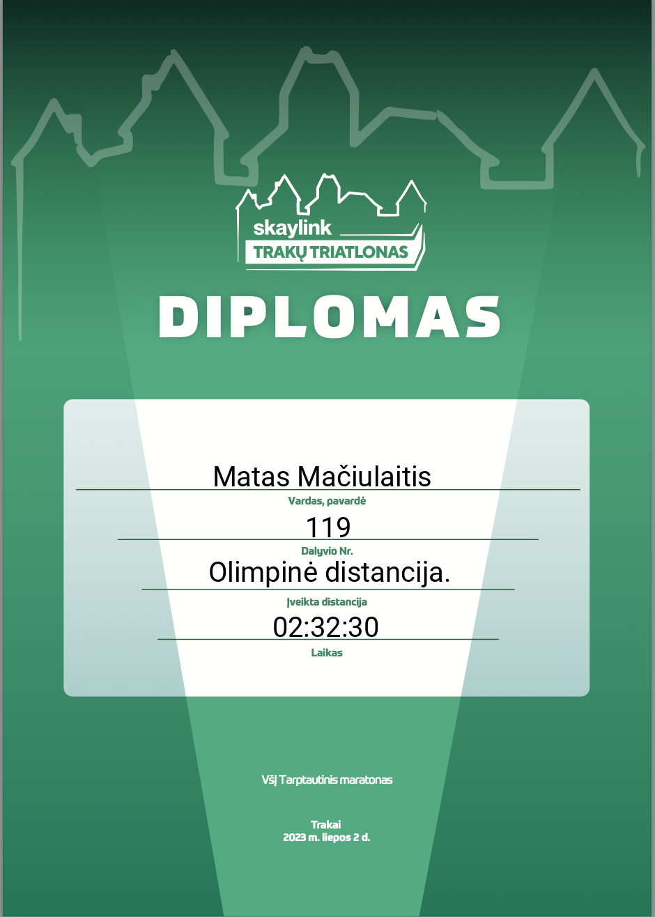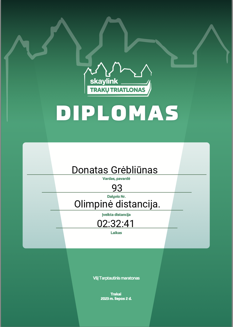 | 67 | Egidijus Buika | Kauno Triatlono Klubas | 176 | Lithuania | Olimpinė distancija. | 02:32:22 | Diplomas |
