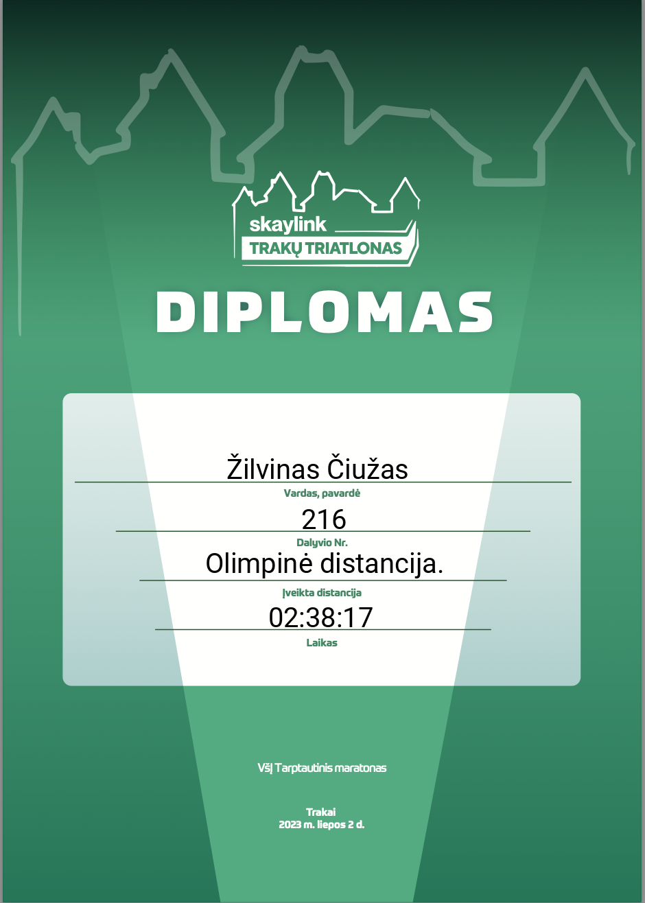 | 90 | Žilvinas Čiužas | SunCity CrossFit | 216 | Lithuania | Olimpinė distancija. | 02:38:17 | Diplomas |