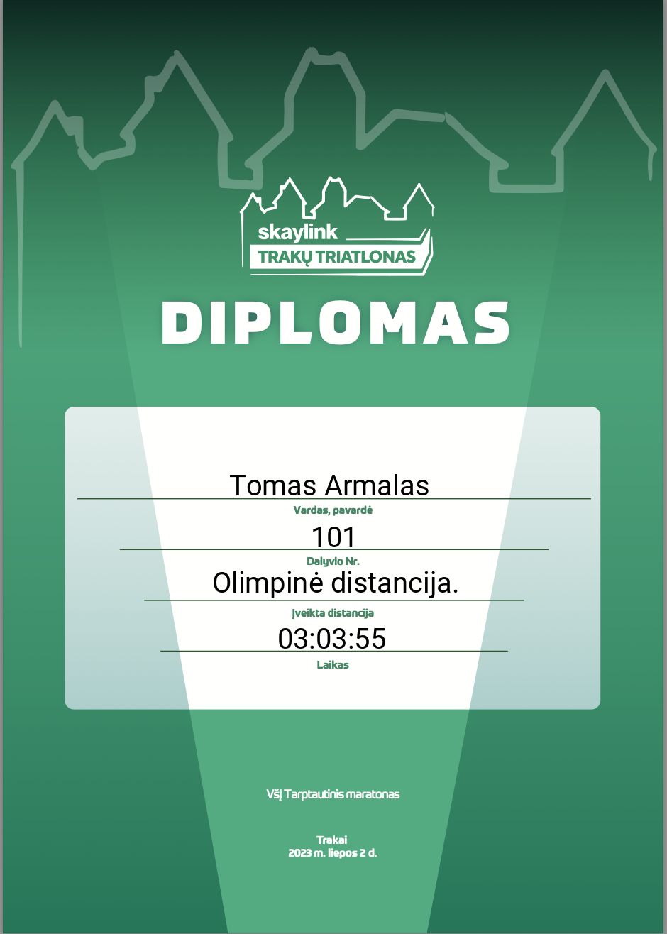 168 Linas Jocius TRItonas 130 Lithuania Olimpinė distancija. 03:04:48 00:46:30 00:01:53 01:21:18 00:13:59 00:13:26 00:13:54 00:01:20 00:53:47 00:12:28 Diplomas