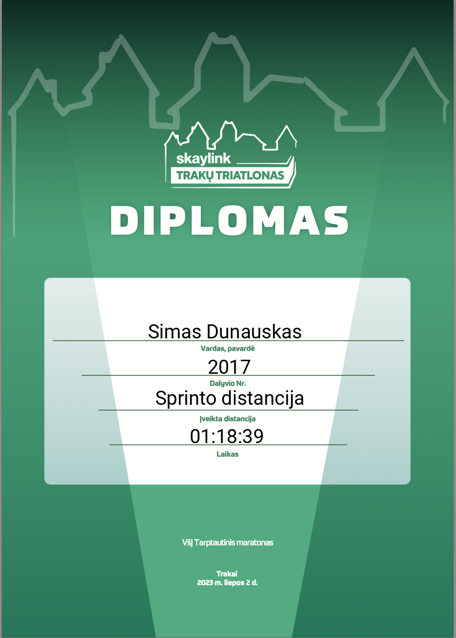 | 47 | Simas Dunauskas | 2017 | Lithuania | Sprinto distancija | 01:18:39 | Diplomas | |