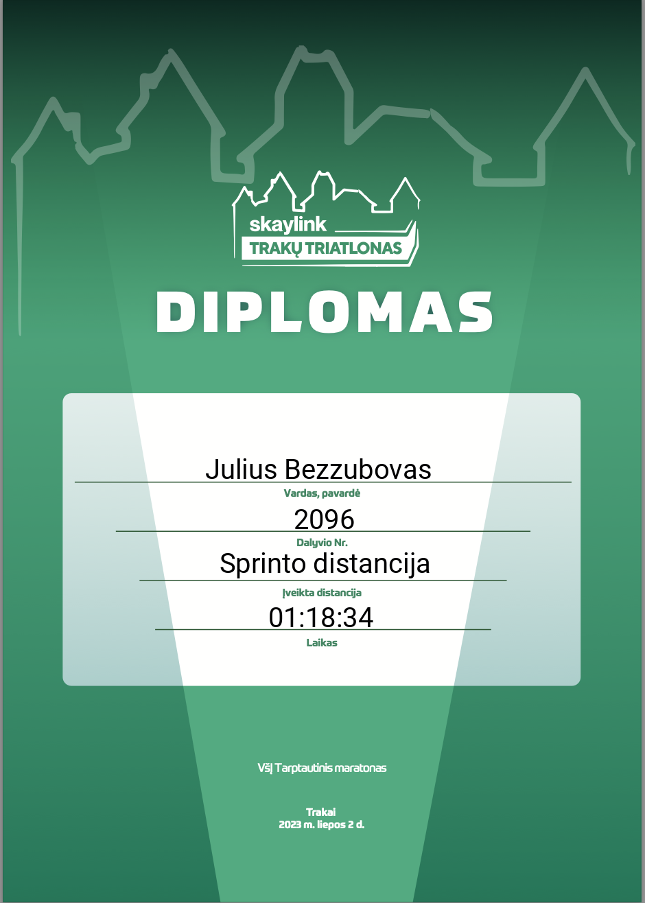 | 42 | Tajus Kolyčius | Panevėžio triatlono klubas | 3080 | Lithuania | Super sprinto distancija | 00:51:30 | Diplomas |