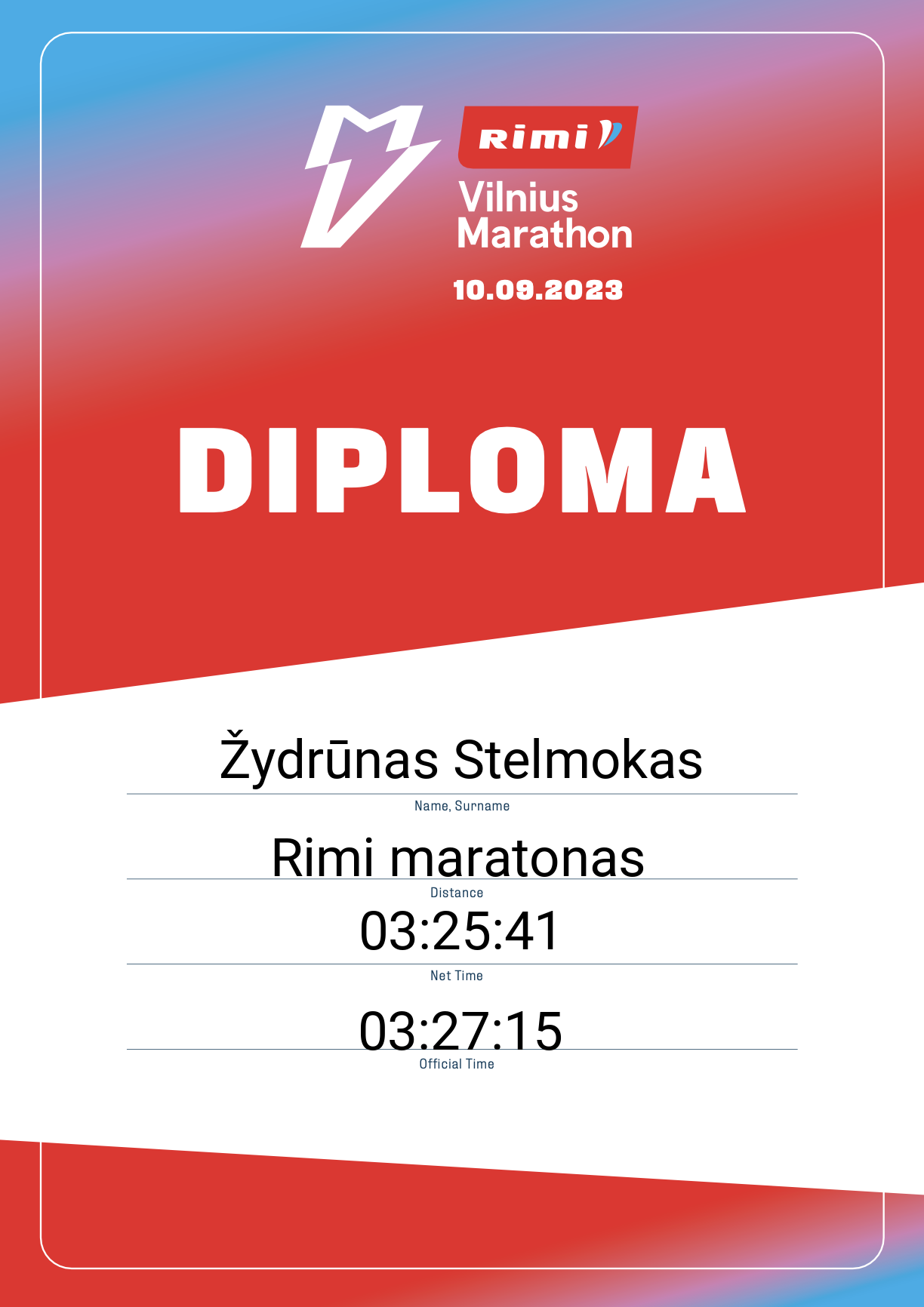 | 139 | Žygimantas Stuknys | Origami runners | 213 | Lithuania | Rimi maratonas | 03:27:05 | Diplomas |