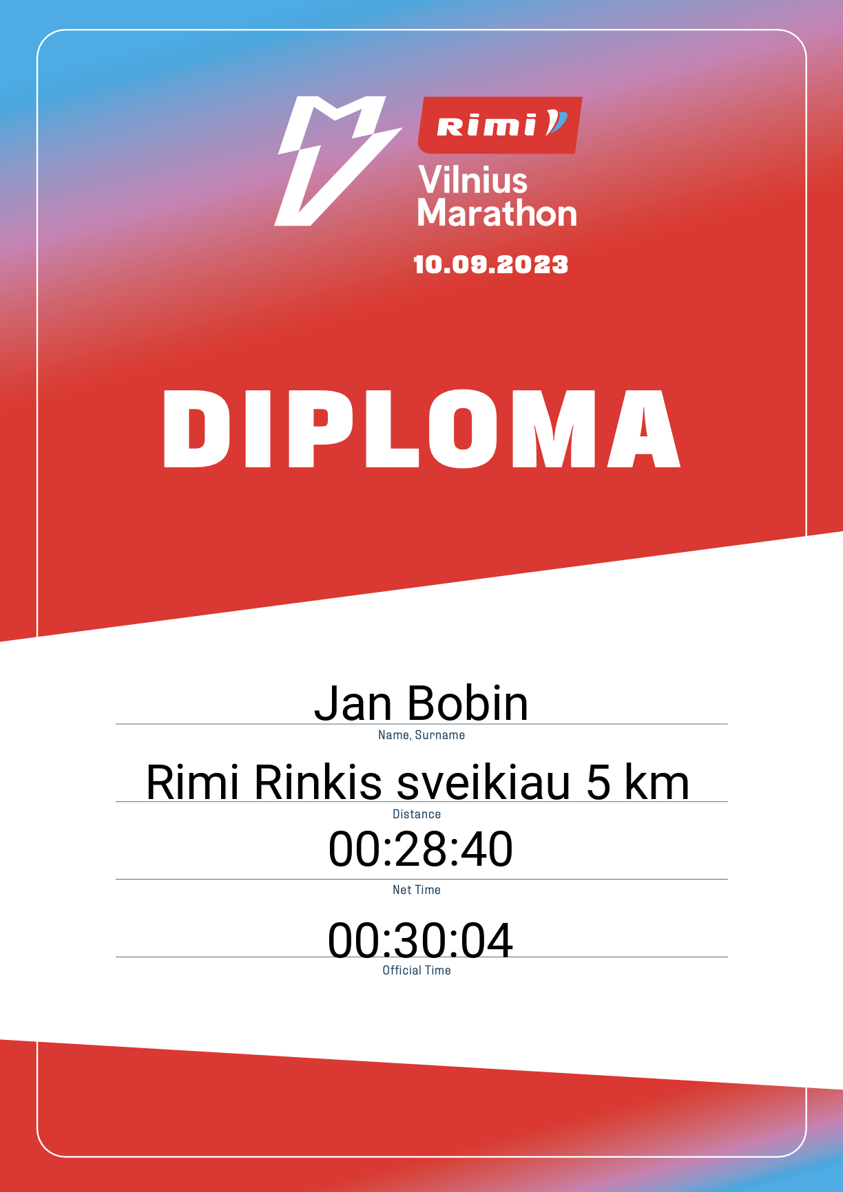 | 747 | Jan Bobin | Linas Agro Žvaigždės | 31324 | Lithuania | Rimi Rinkis sveikiau 5 km | 00:30:04 | Diplomas |