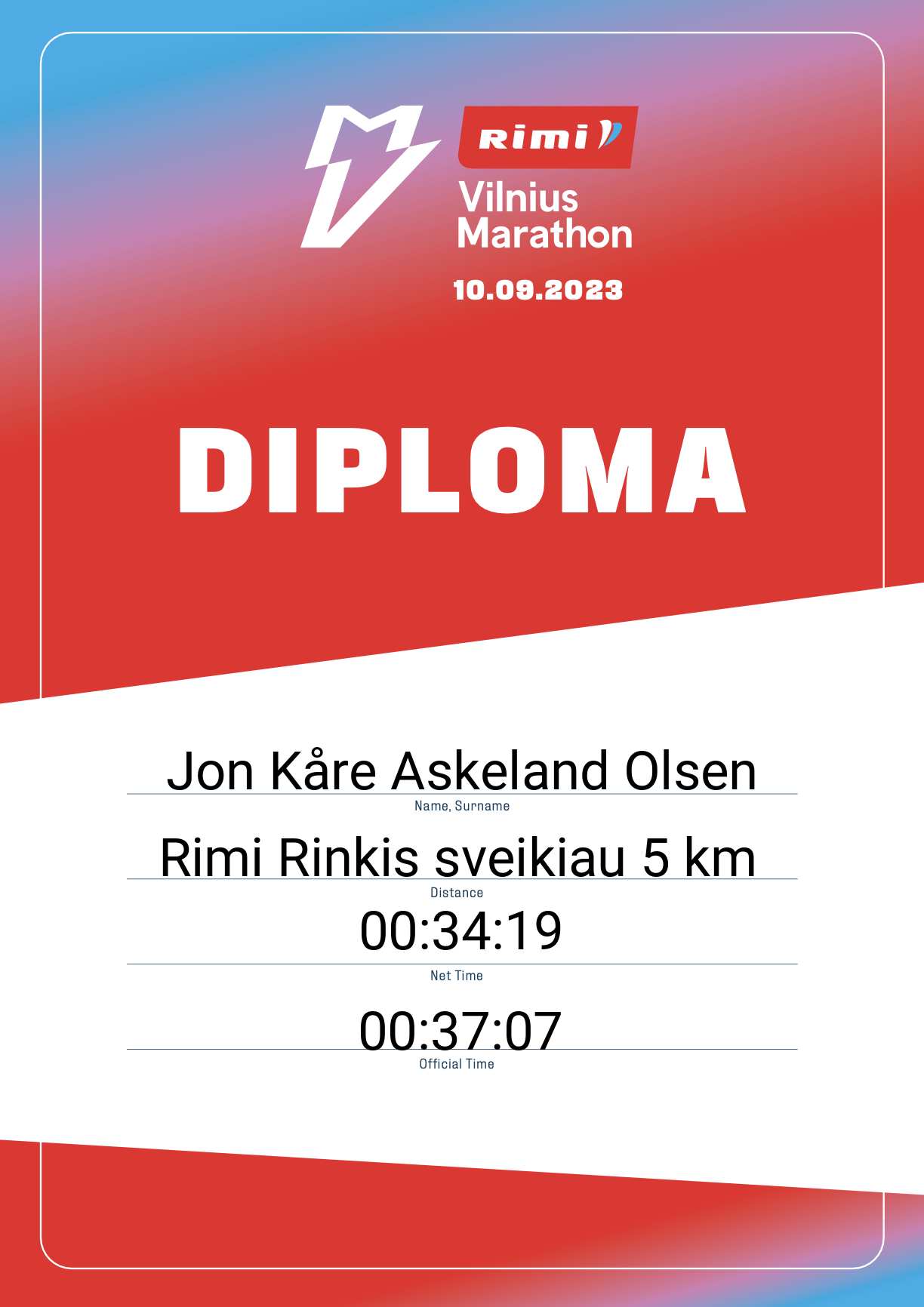 | 1723 | Jon Kåre Askeland Olsen | Grødem Runners | 32825 | Norway | Rimi Rinkis sveikiau 5 km | 00:37:07 | Diplomas |