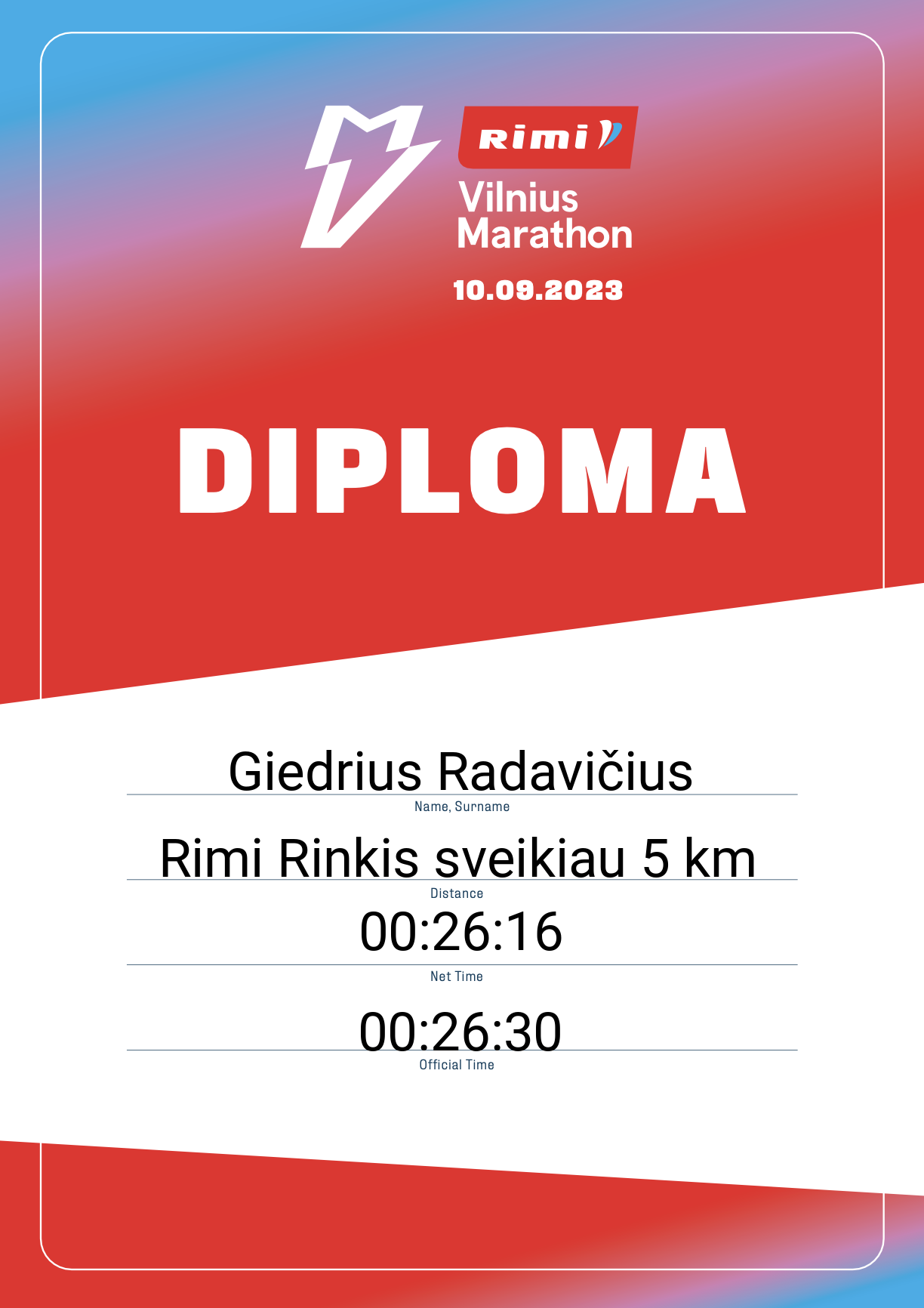 | 358 | Justas Miliauskas | Erasmus+ | 32126 | Lithuania | Rimi Rinkis sveikiau 5 km | 00:26:30 | Diplomas |