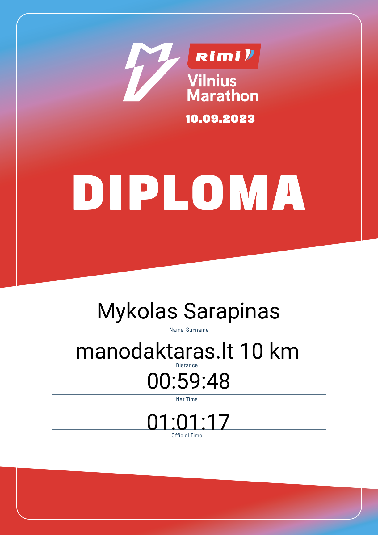 | 468 | Gintautas Gustas | Shift4 | 20746 | Lithuania | manodaktaras.lt 10 km | 00:53:41 | Diplomas |