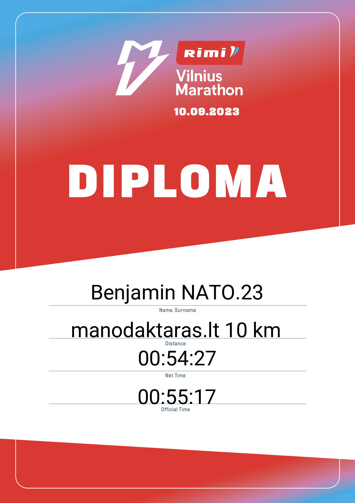 | 583 | Benjamin NATO.23 | NATO | 21725 | Germany | manodaktaras.lt 10 km | 00:55:17 | Diplomas |