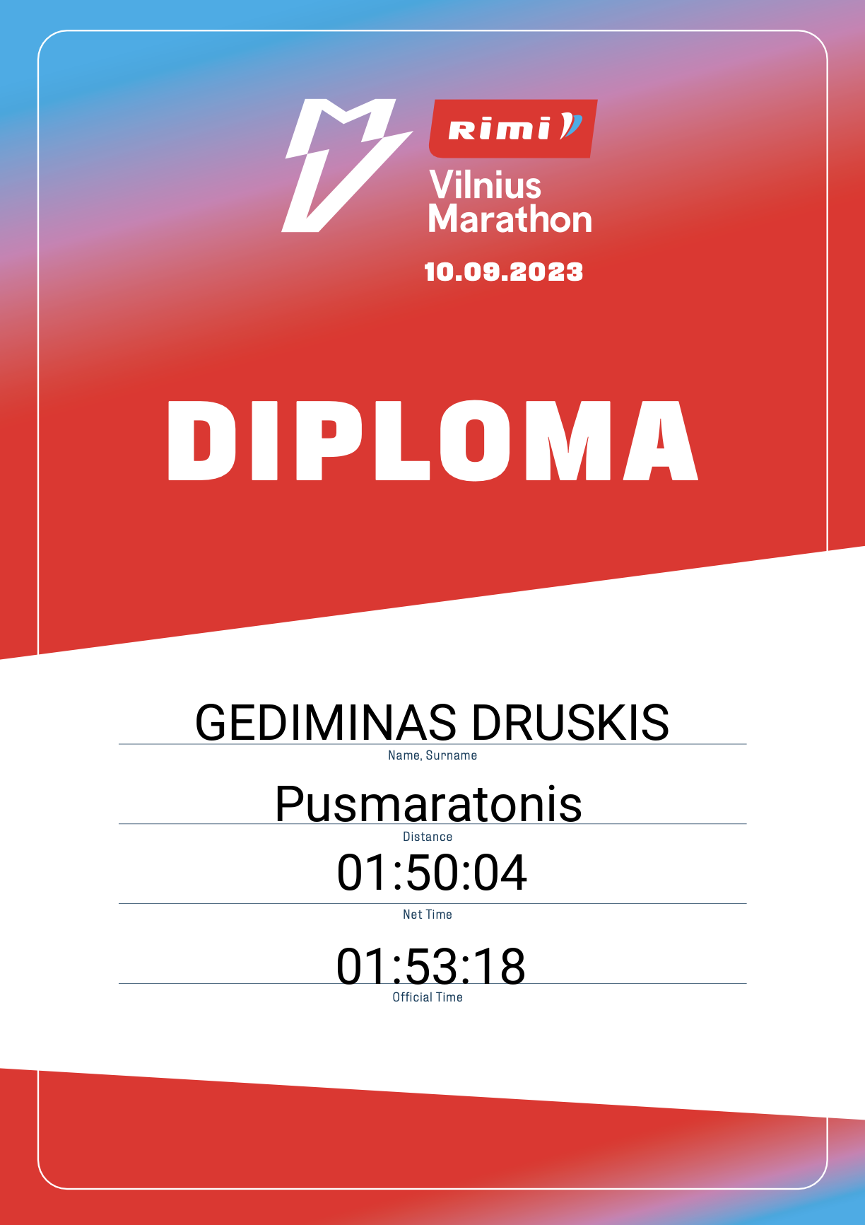 | 655 | GEDIMINAS DRUSKIS | Fat Jesus Running club | 12074 | Lithuania | Pusmaratonis | 01:53:18 | Diplomas |