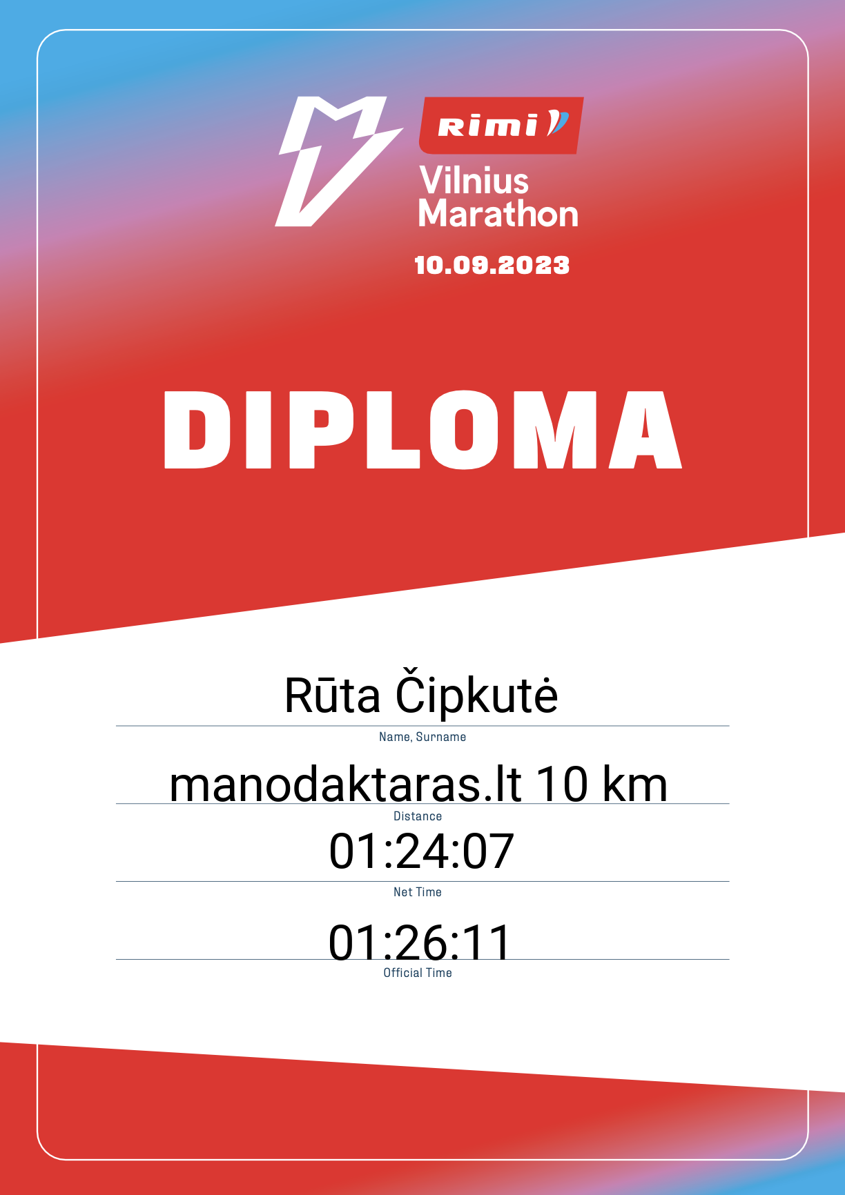 | 1985 | Rūta Čipkutė | Greitos kojos | 20190 | Lithuania | manodaktaras.lt 10 km | 01:26:11 | Diplomas |