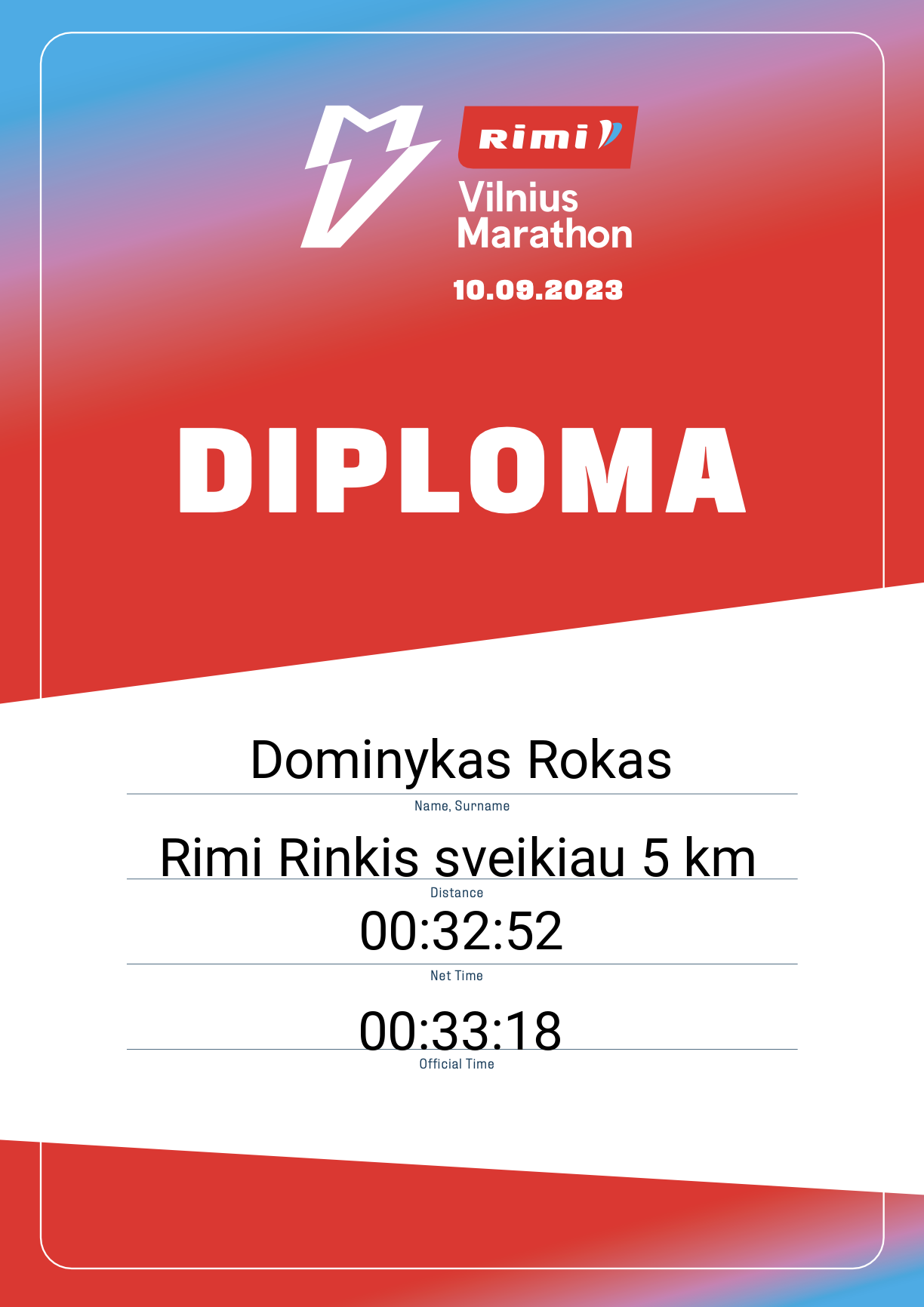 | 1164 | Dominykas Rokas | - | 32654 | Lithuania | Rimi Rinkis sveikiau 5 km | 00:33:18 | Diplomas |