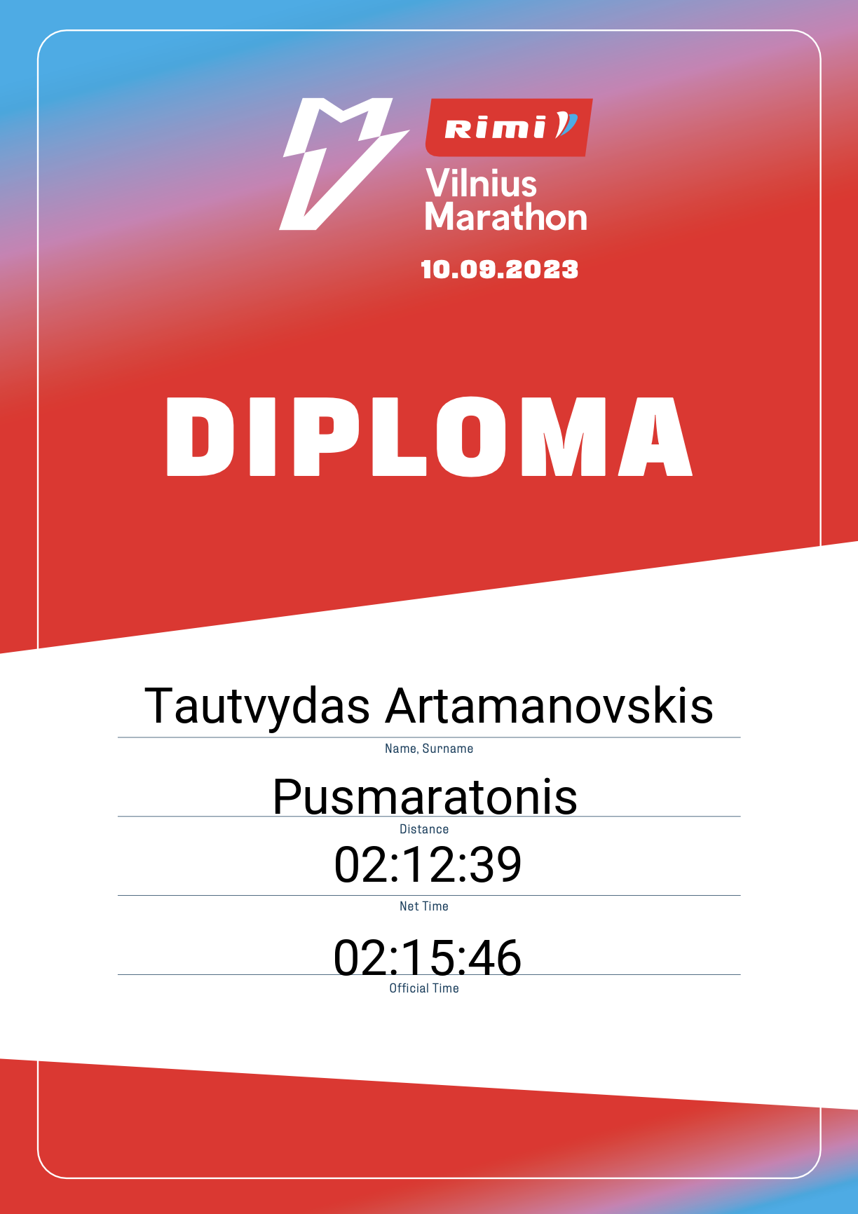 | 1283 | Vidmantas Grigalavičius | healthnews | 13798 | Lithuania | Pusmaratonis | 02:10:17 | Diplomas |