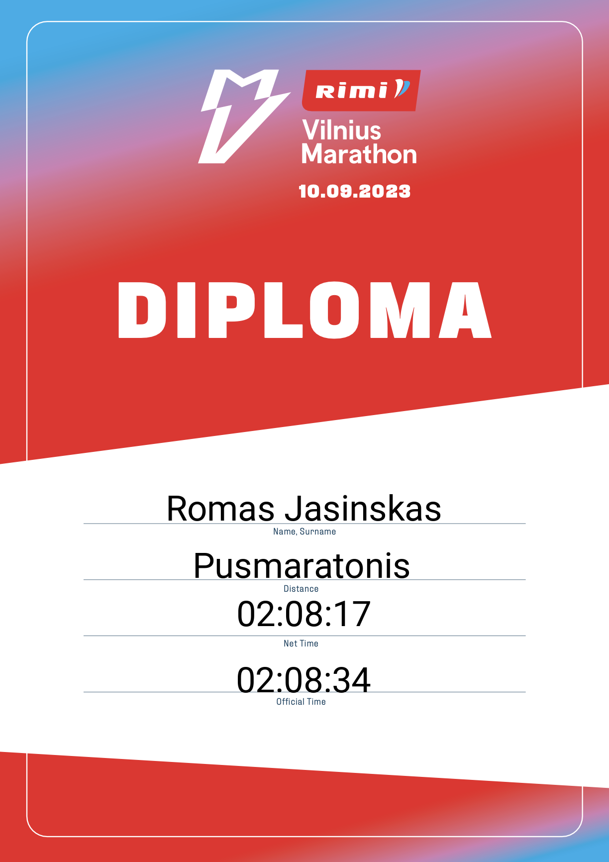 | 45 | Vilius Jorudas | 13995 | Lithuania | Pusmaratonis | 01:23:13 | Diplomas | |