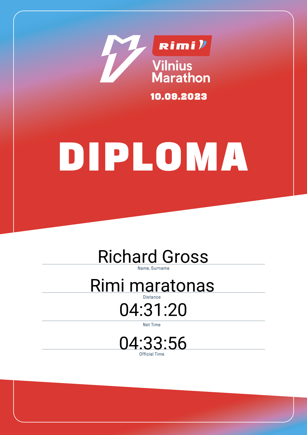 | 113 | Tadas Survila | Maratonas | 901 | Lithuania | Rimi maratonas | 03:22:43 | Diplomas |