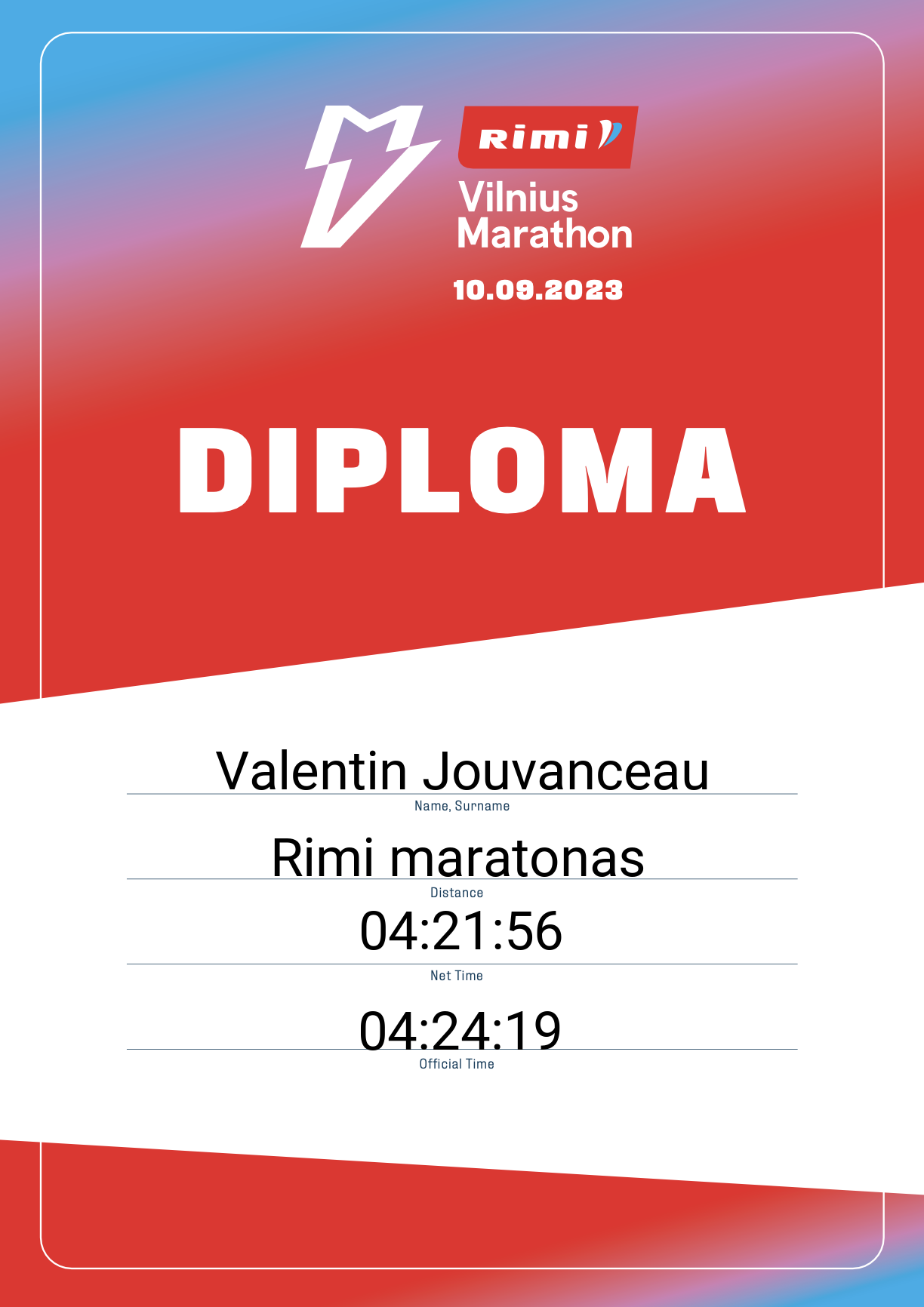 | 615 | Valentin Jouvanceau | VISADA CENTRINIS | 1229 | Lithuania | Rimi maratonas | 04:24:19 | Diplomas |