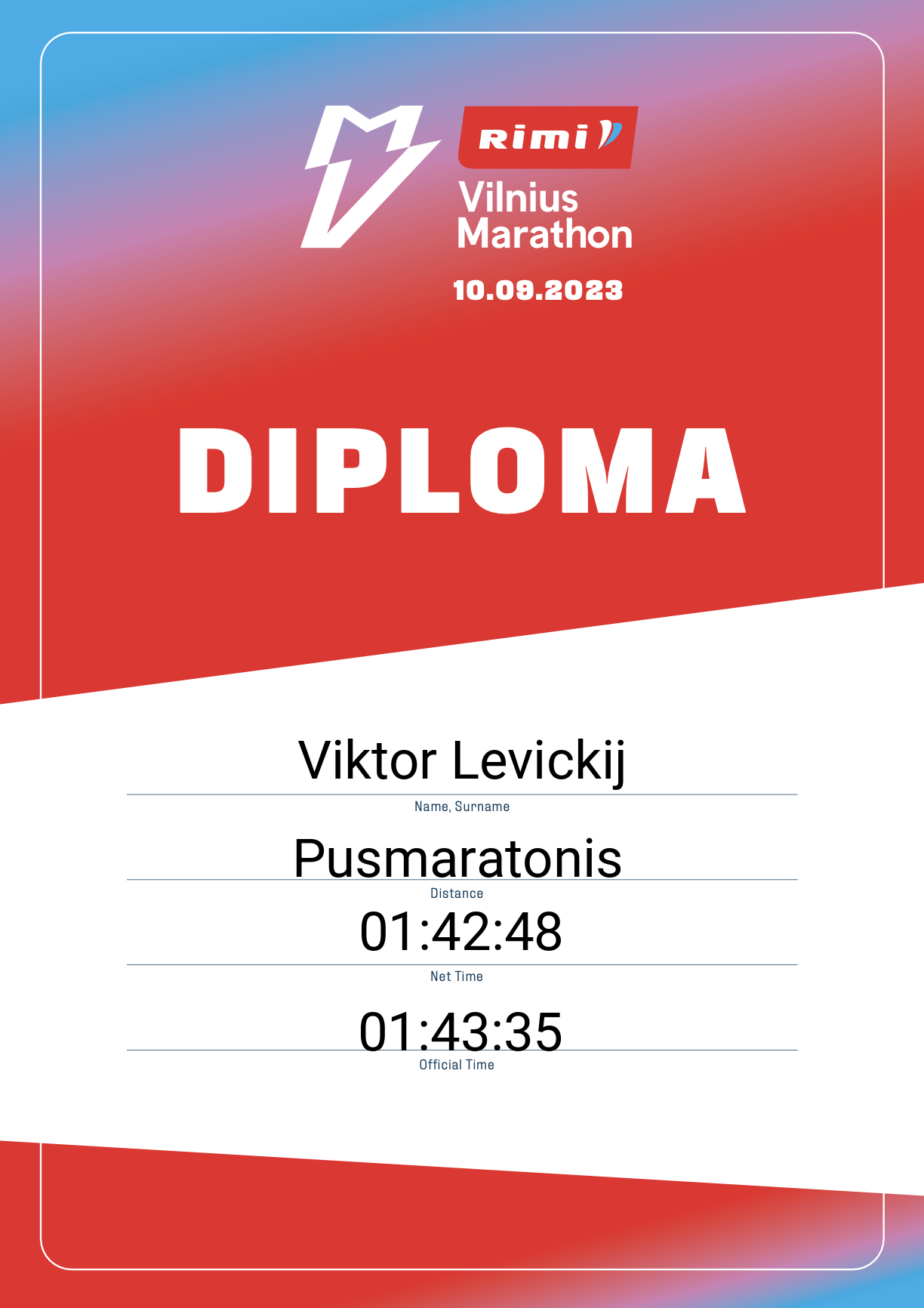 | 342 | Viktor Levickij | 12417 | Lithuania | Pusmaratonis | 01:43:35 | Diplomas | |
