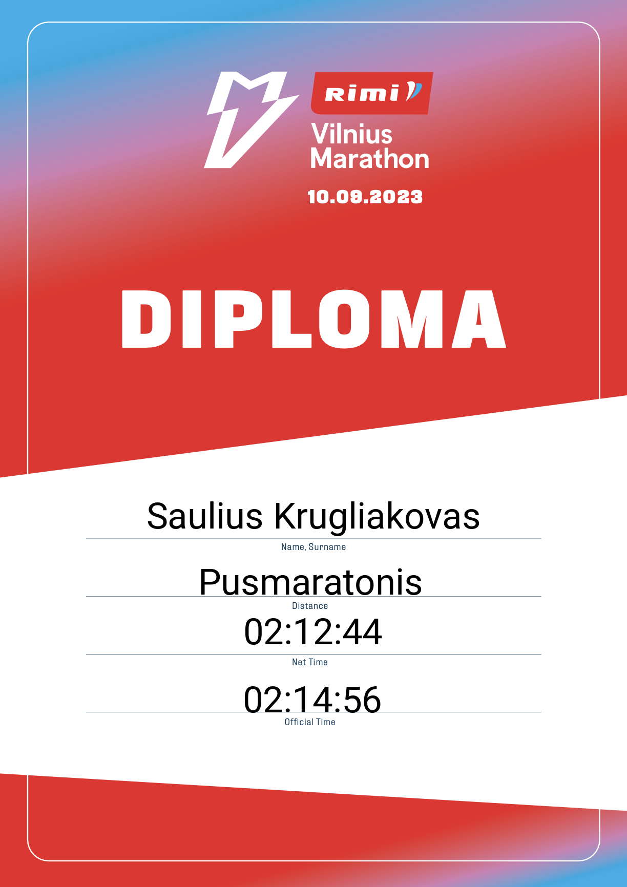 | 1381 | Saulius Krugliakovas | 12600 | Lithuania | Pusmaratonis | 02:14:56 | Diplomas |