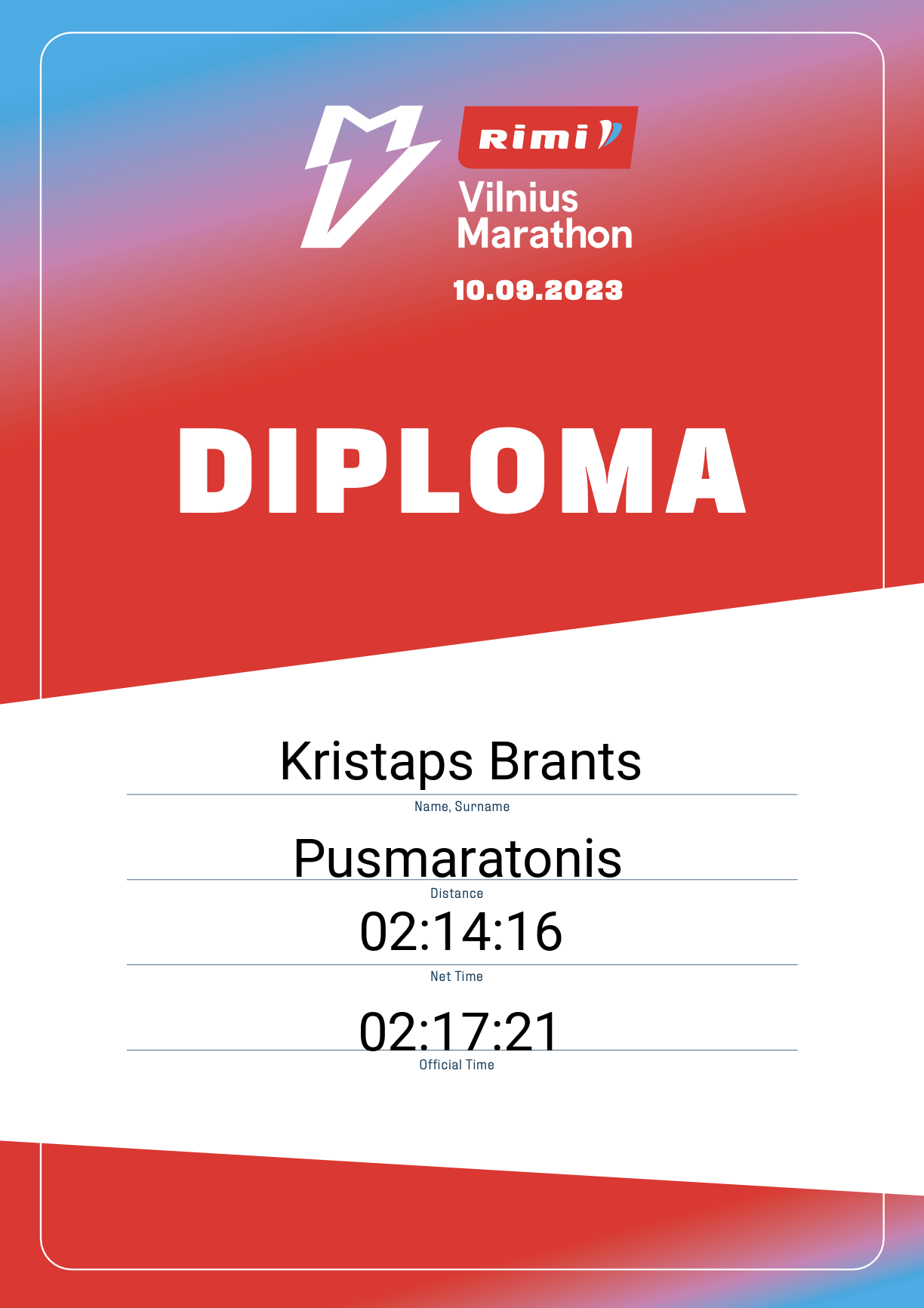 | 1434 | Kristaps Brants | 14165 | Latvia | Pusmaratonis | 02:17:21 | Diplomas | |