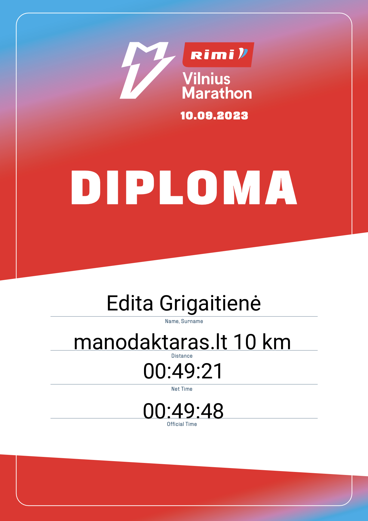 242 Valiantsin Zubarau 21226 Lithuania manodaktaras.lt 10 km 00:49:50 00:49:05 00:24:53 Diplomas