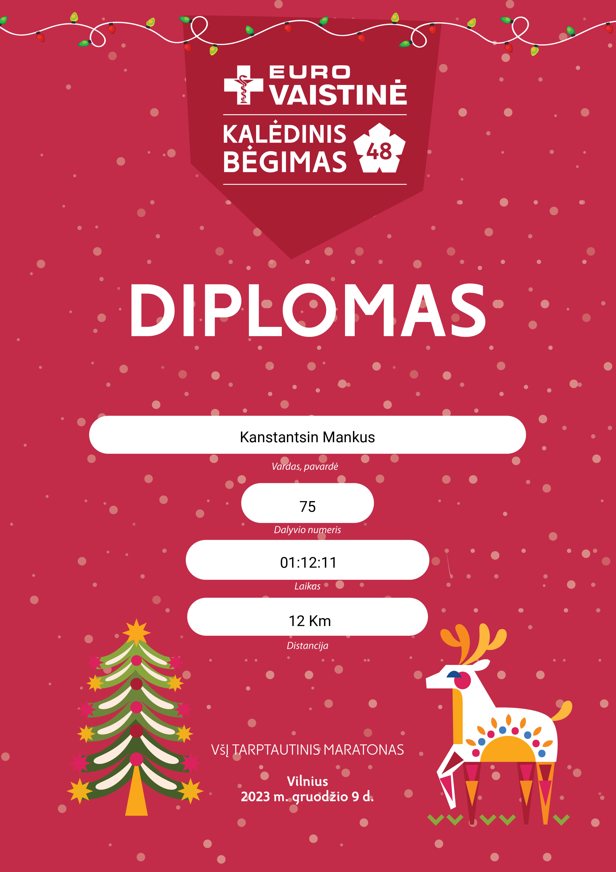 | 695 | Kanstantsin Mankus | 75 | Lithuania | 12 Km | 01:12:11 | Diplomas | |