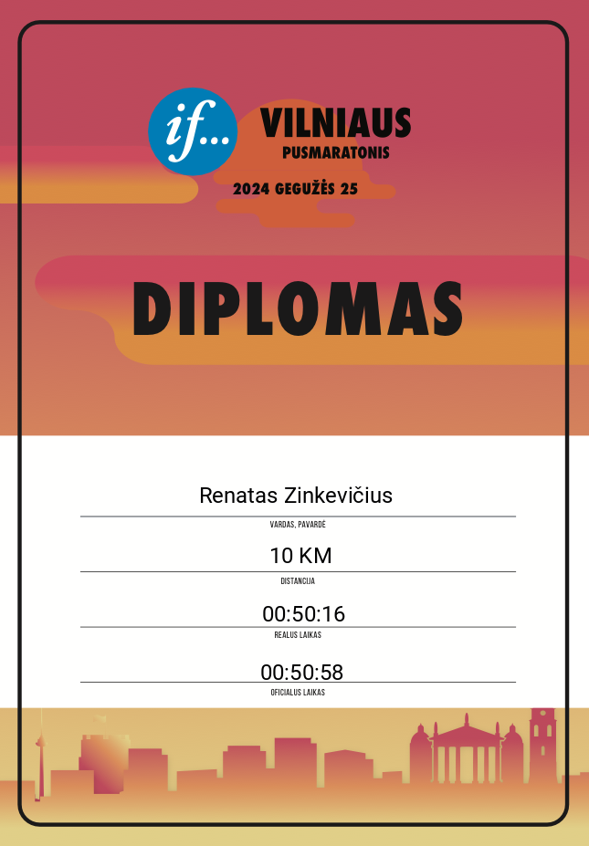 | 206 | Renatas Zinkevičius | Dianos pirmūnai | 20628 | Lithuania | 10 KM | 00:50:58 | Diplomas |