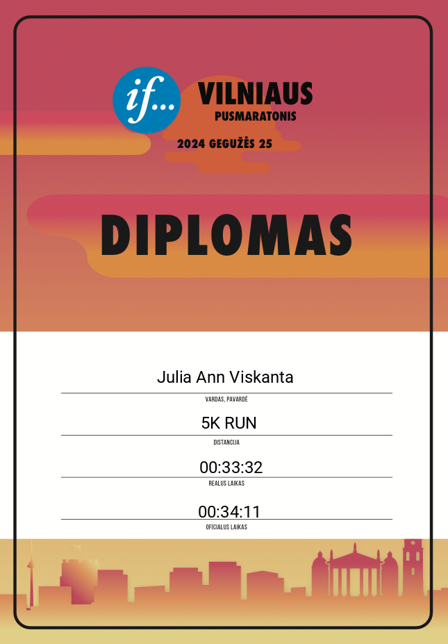 | 379 | Anastasiia Usata | 30324 | Lithuania | Nike Youth 5K RUN | 00:33:22 | Diplomas | |