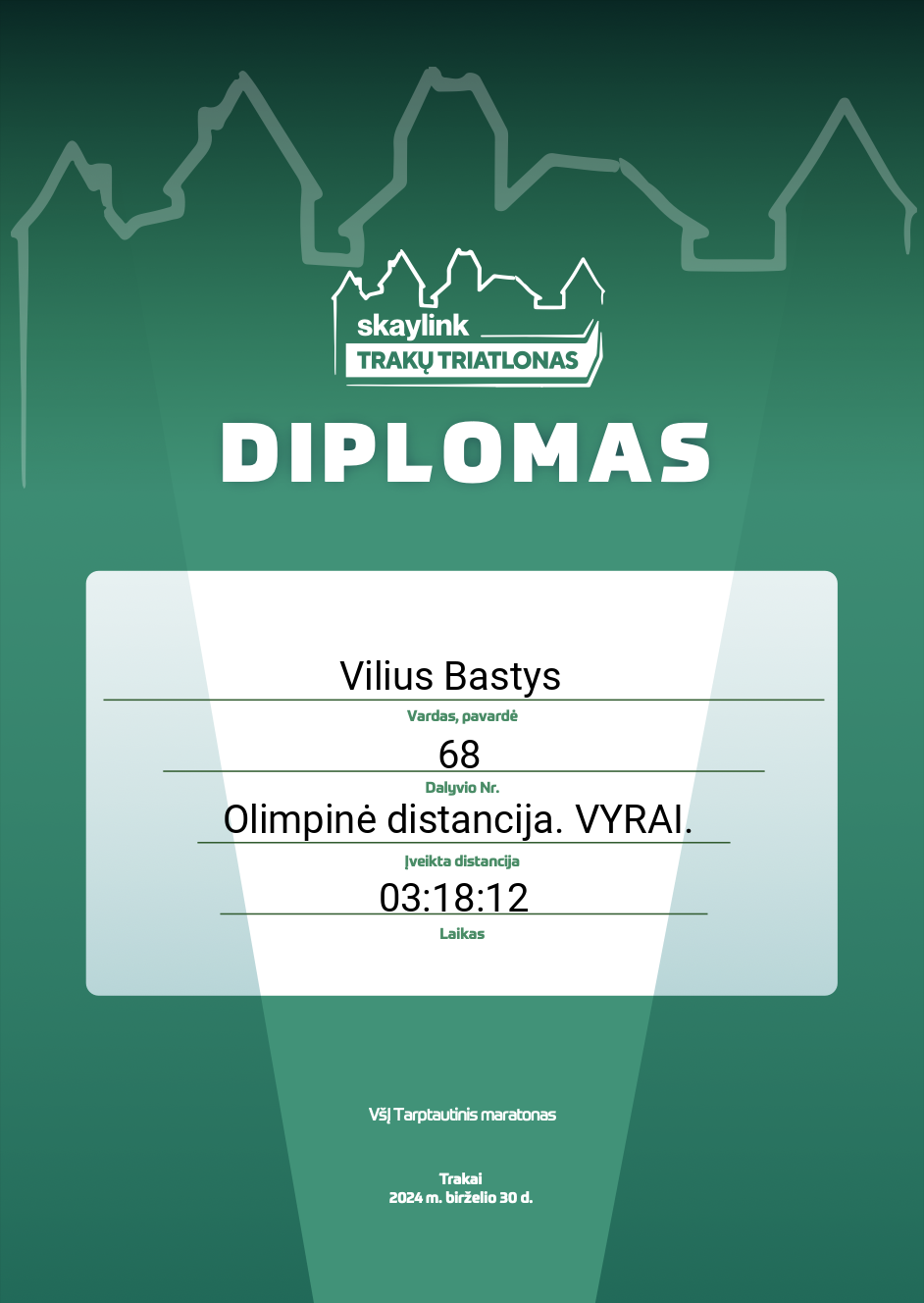 | 236 | Vilius Bastys | ChallengeMe_ | 68 | Lithuania | Olimpinė distancija. VYRAI. | 03:18:12 | Diplomas |