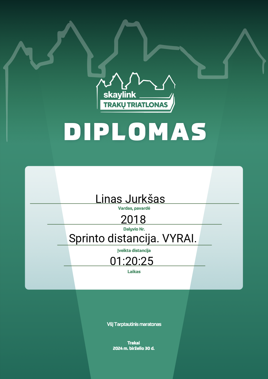 | 32 | Linas Jurkšas | VISADA CENTRINIS | 2018 | Lithuania | Sprinto distancija. VYRAI. | 01:20:25 | Diplomas |