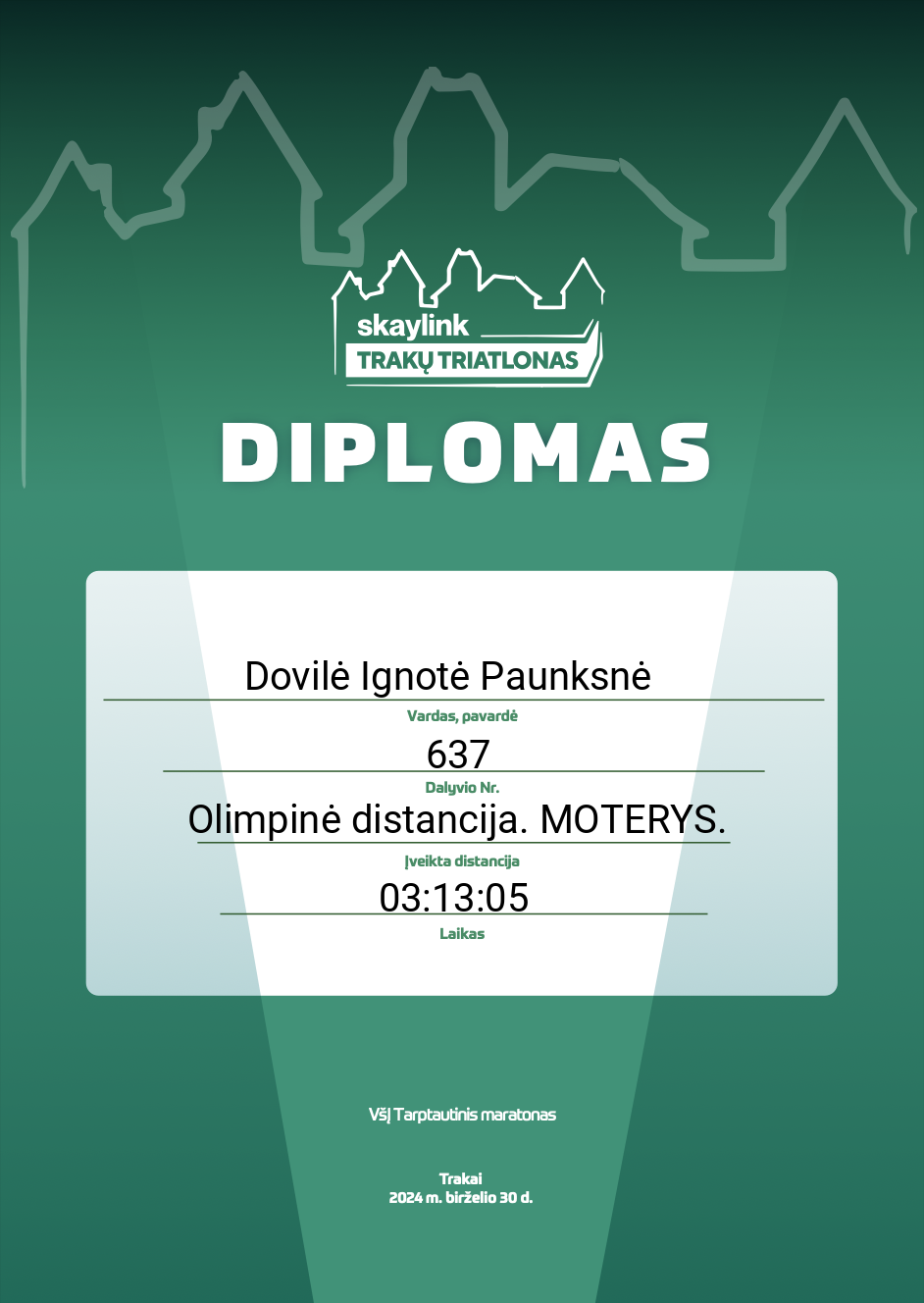 | 18 | Dovilė Žemaitytė | HighPeaks Lietuva | 607 | Lithuania | Olimpinė distancija. MOTERYS. | 02:57:53 | Diplomas |