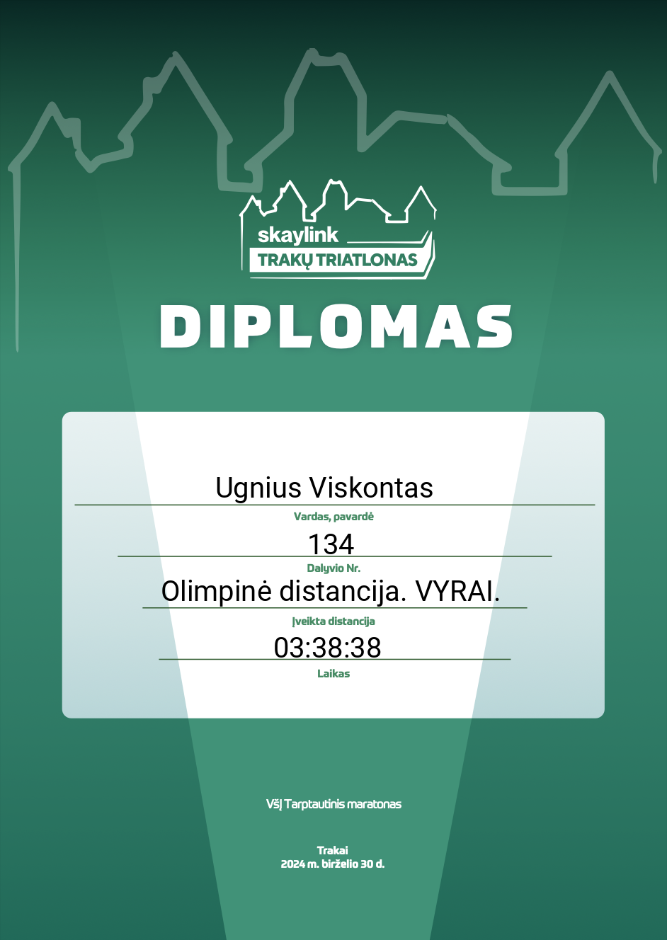 | 251 | Ugnius Viskontas | 134 | Lithuania | Olimpinė distancija. VYRAI. | 03:38:38 | Diplomas | |