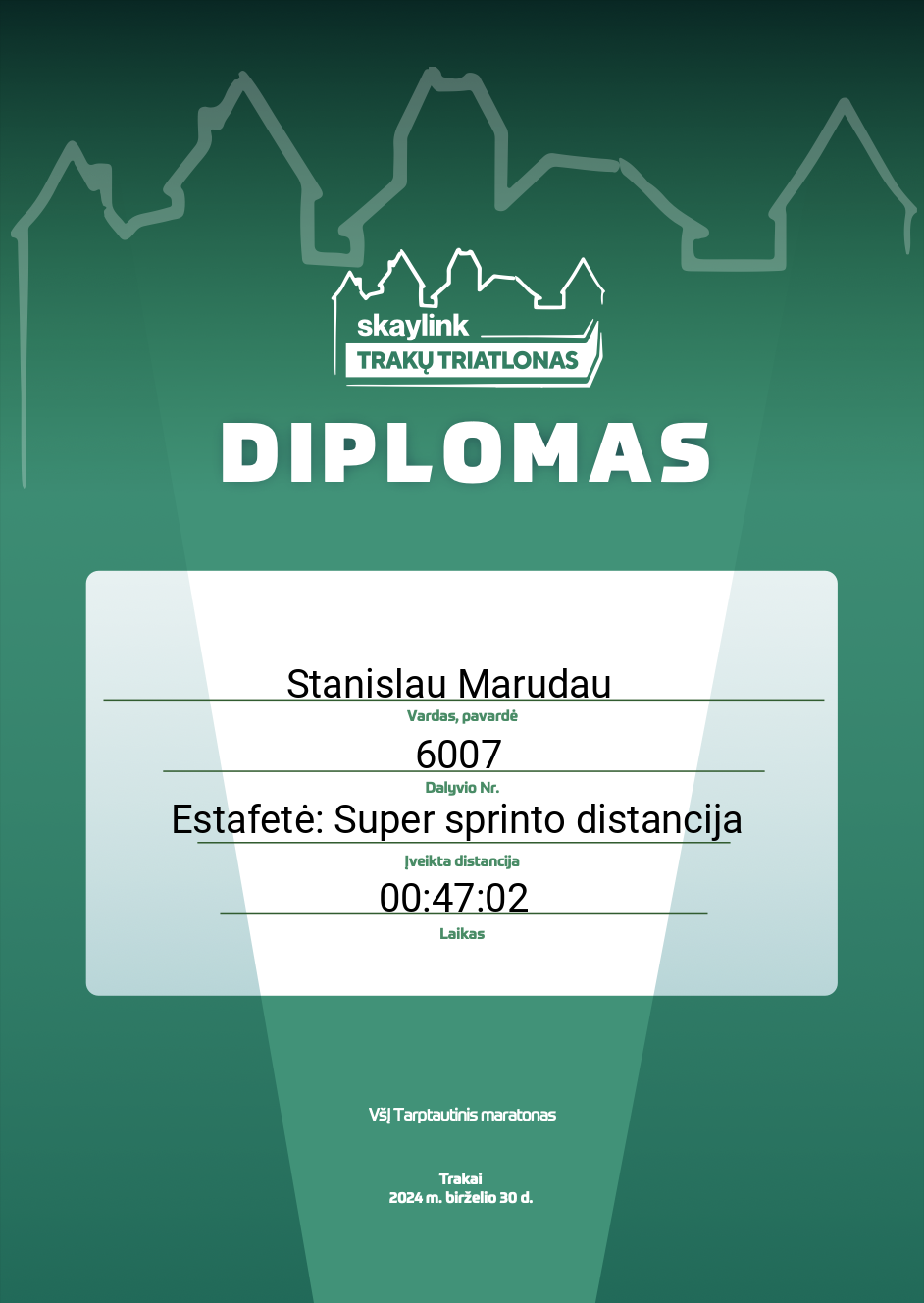 | 6 | Stanislau Marudau | EPAM Systems | 6007 | Lithuania | Estafetė: Super sprinto distancija | 00:47:02 | Diplomas |