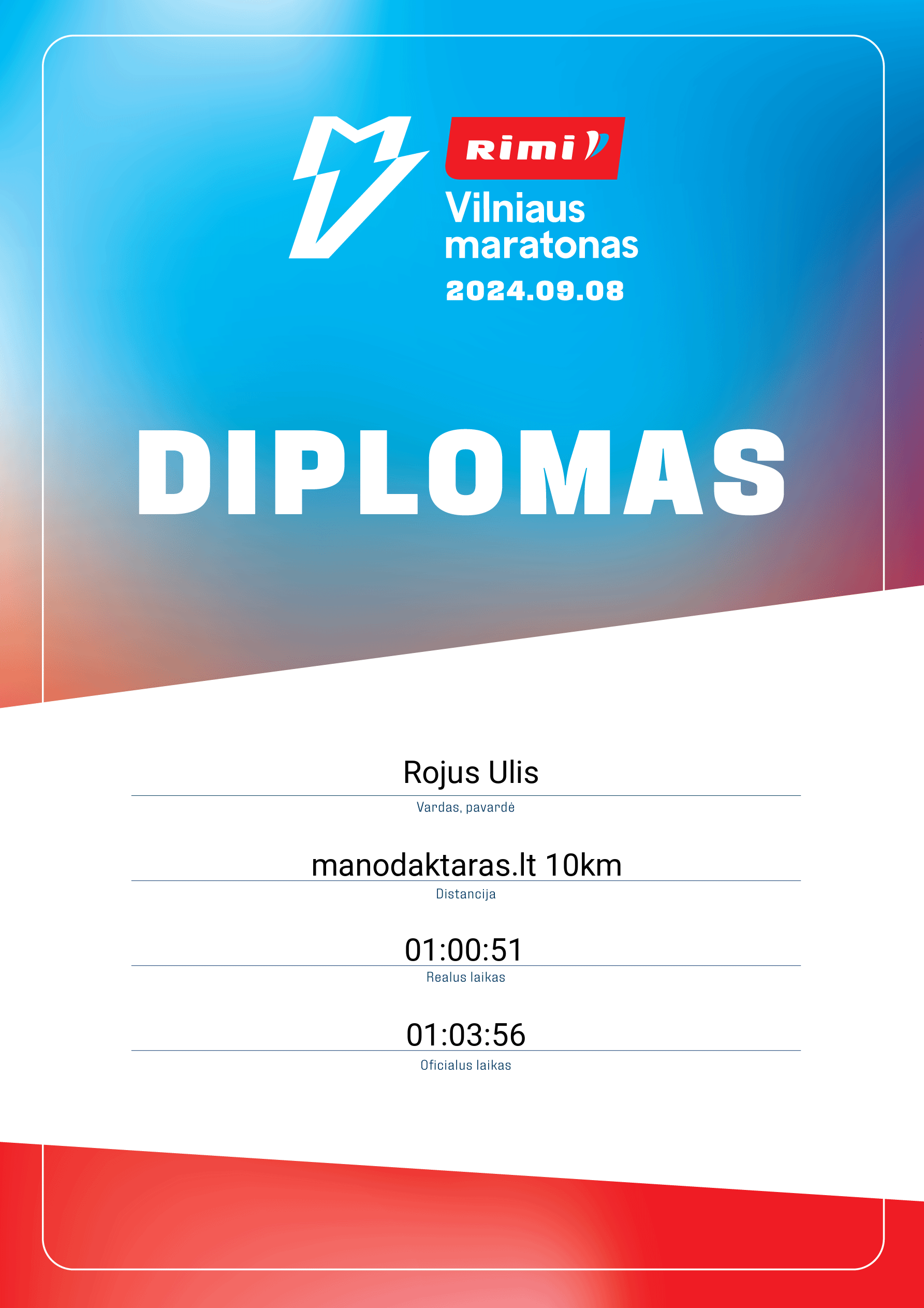 | 1661 | Dovydas Kundreckas | Swedbank | 22704 | Lithuania | manodaktaras.lt 10km | 01:08:26 | Diplomas |
