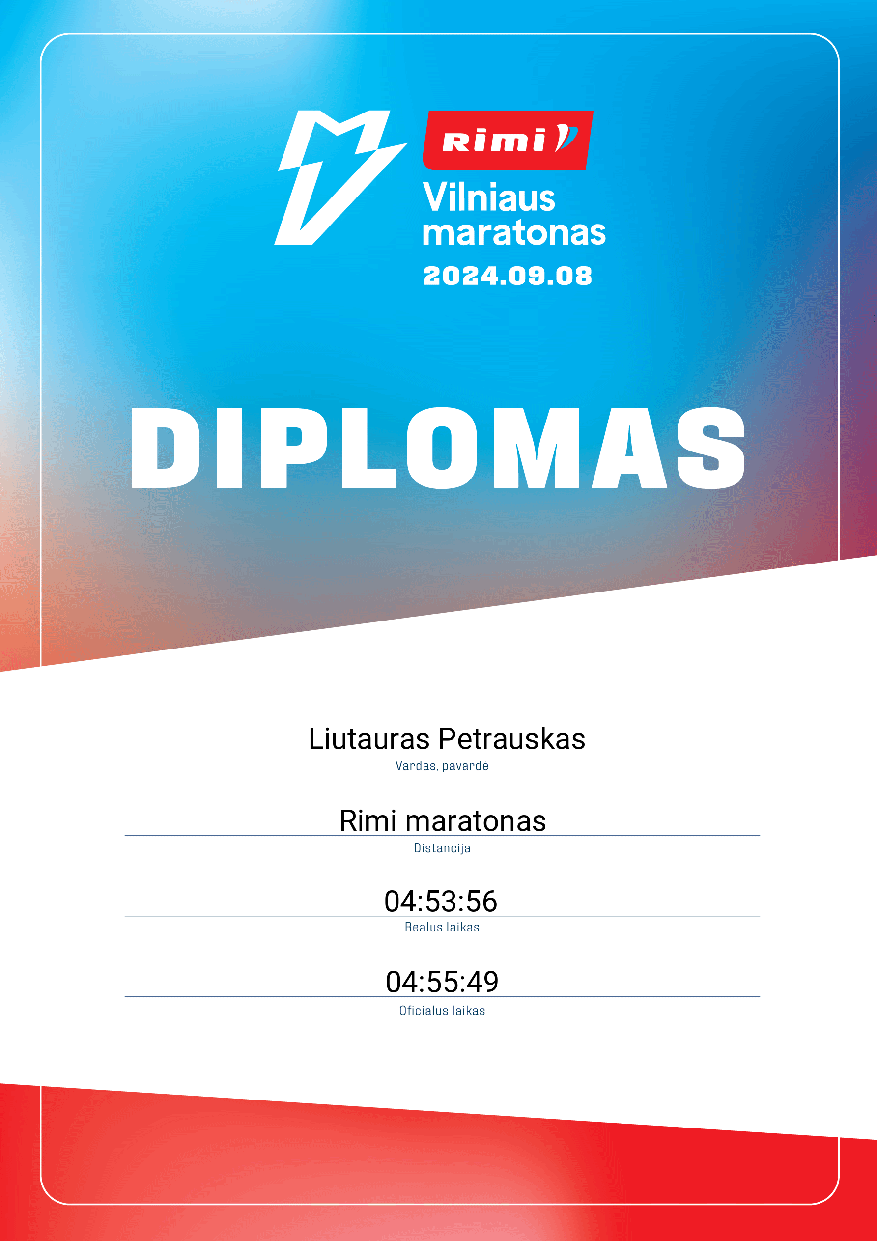 | 539 | Ignas Brazauskas | Love Streams Running | 595 | Lithuania | Rimi maratonas | 03:59:48 | Diplomas |