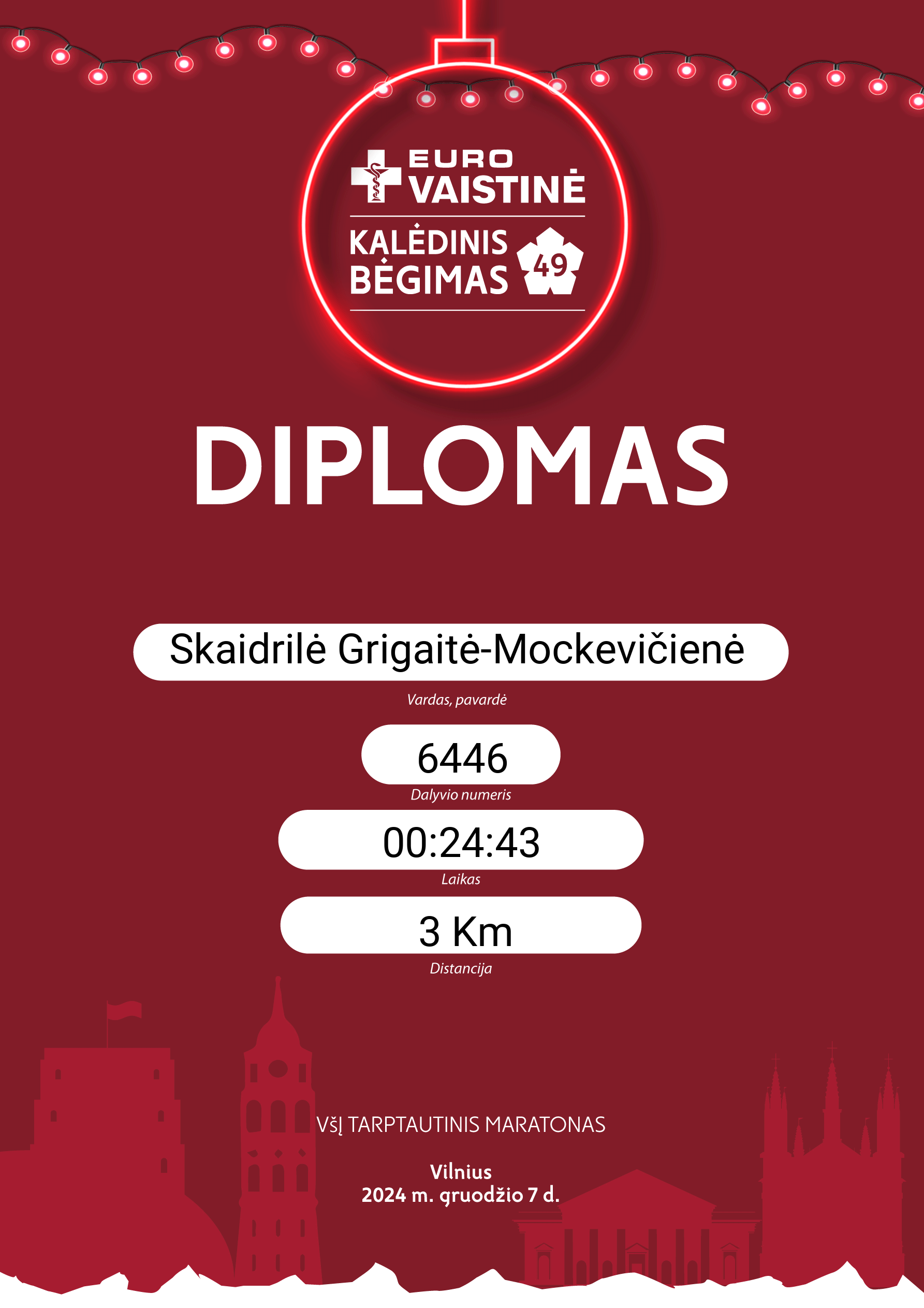 | 518 | Skaidrilė Grigaitė-Mockevičienė | 6446 | Lithuania | 3 Km | 00:24:43 | Diplomas | |