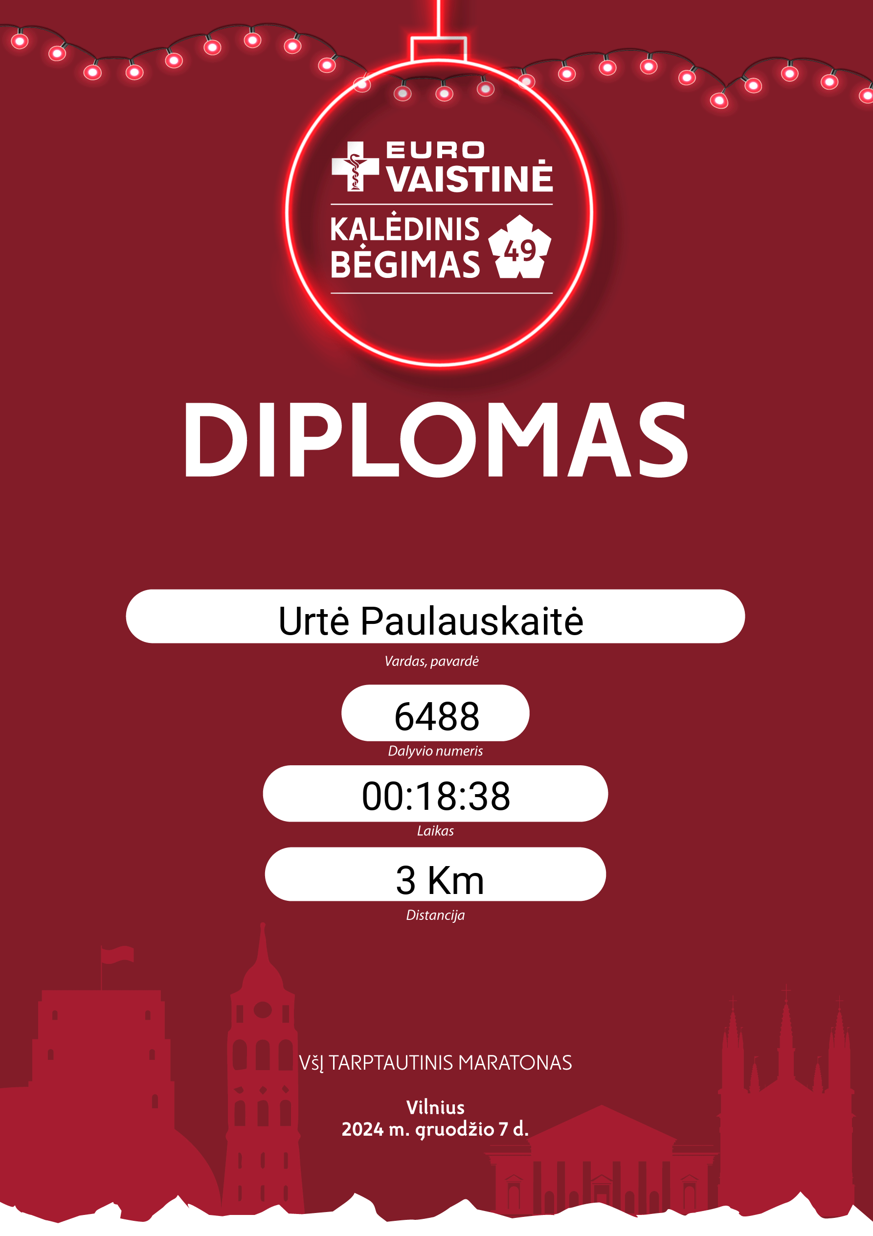 | 202 | Urtė Paulauskaitė | 6488 | Lithuania | 3 Km | 00:18:38 | Diplomas | |