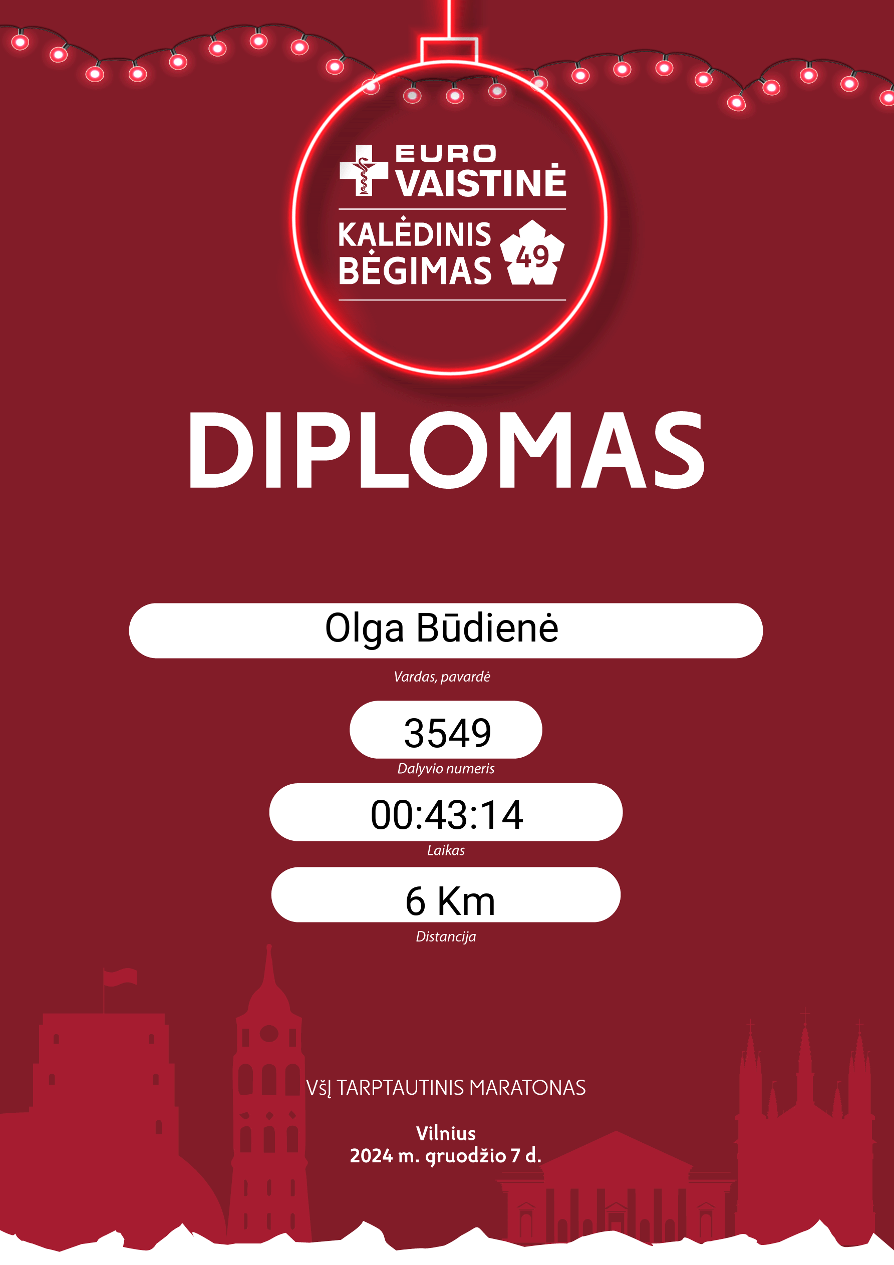 | 758 | Olga Būdienė | Walletto Runners Team | 3549 | Lithuania | 6 Km | 00:43:14 | Diplomas |