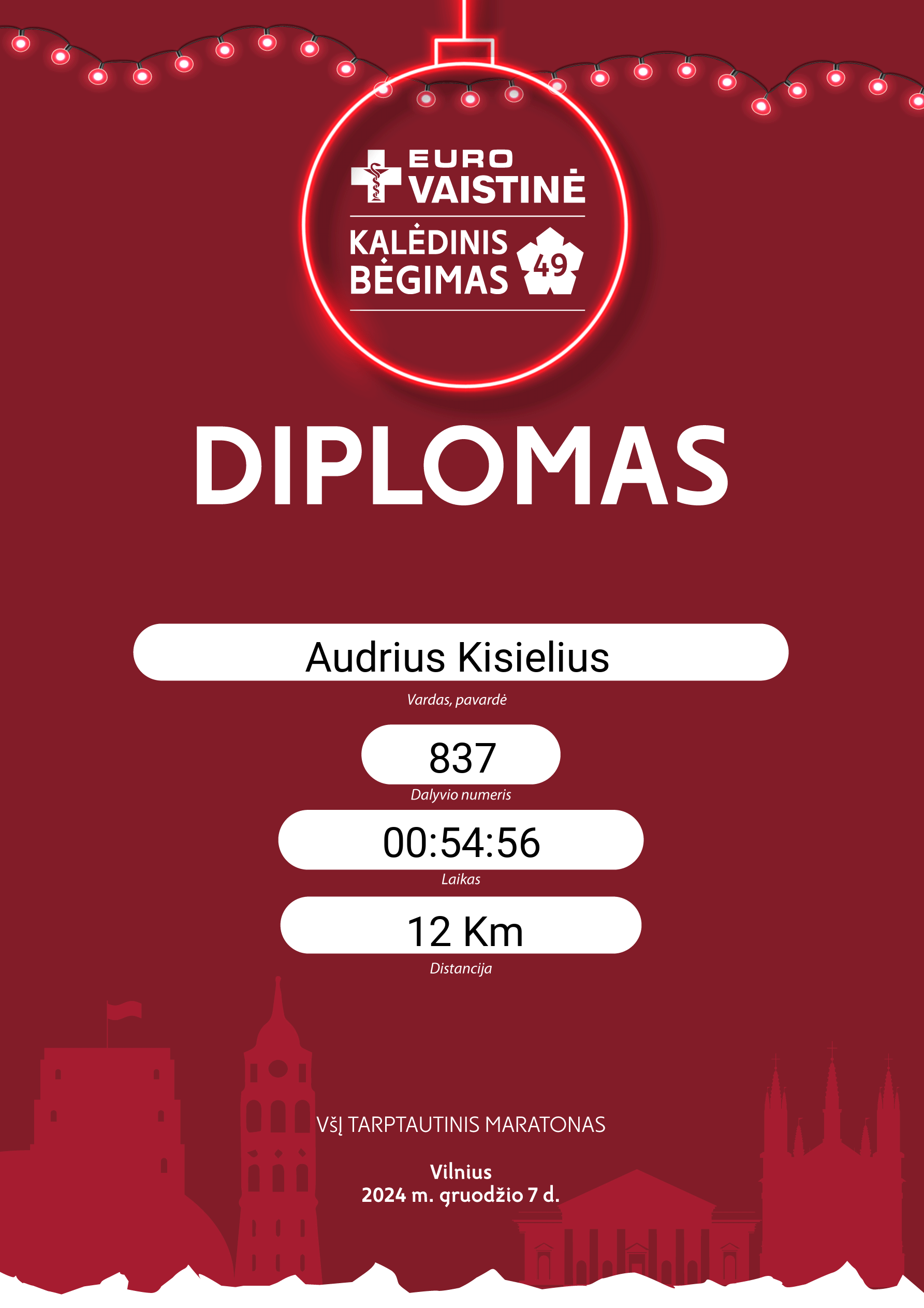136 Audrius Kisielius Sesės bega 837 Lithuania 12 Km 00:54:56 00:54:35 00:24:01 00:28:31 00:50:57 Diplomas