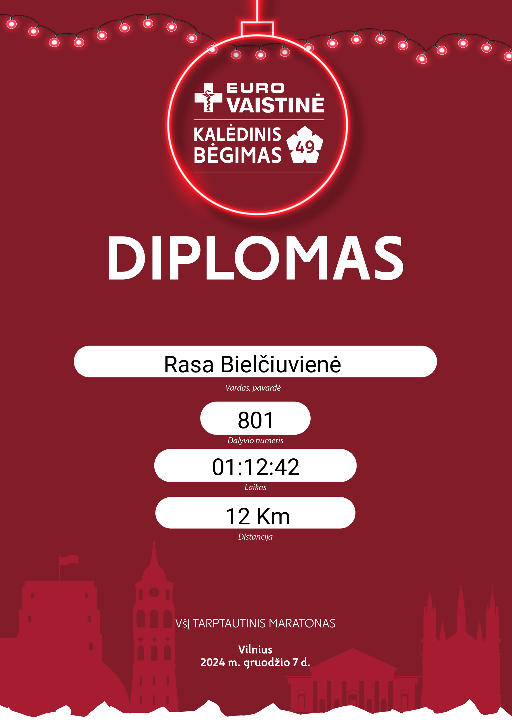 | 684 | Rasa Bielčiuvienė | BSO | 801 | Lithuania | 12 Km | 01:12:42 | Diplomas |