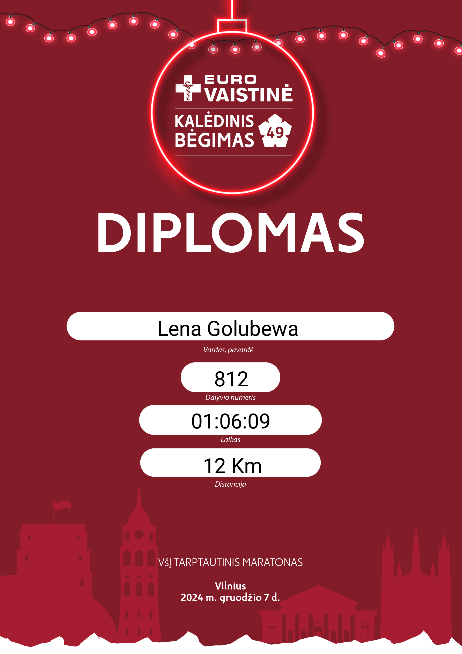 | 670 | Jurgita Lapienytė | Love streams running | 814 | Lithuania | 12 Km | 01:12:23 | Diplomas |