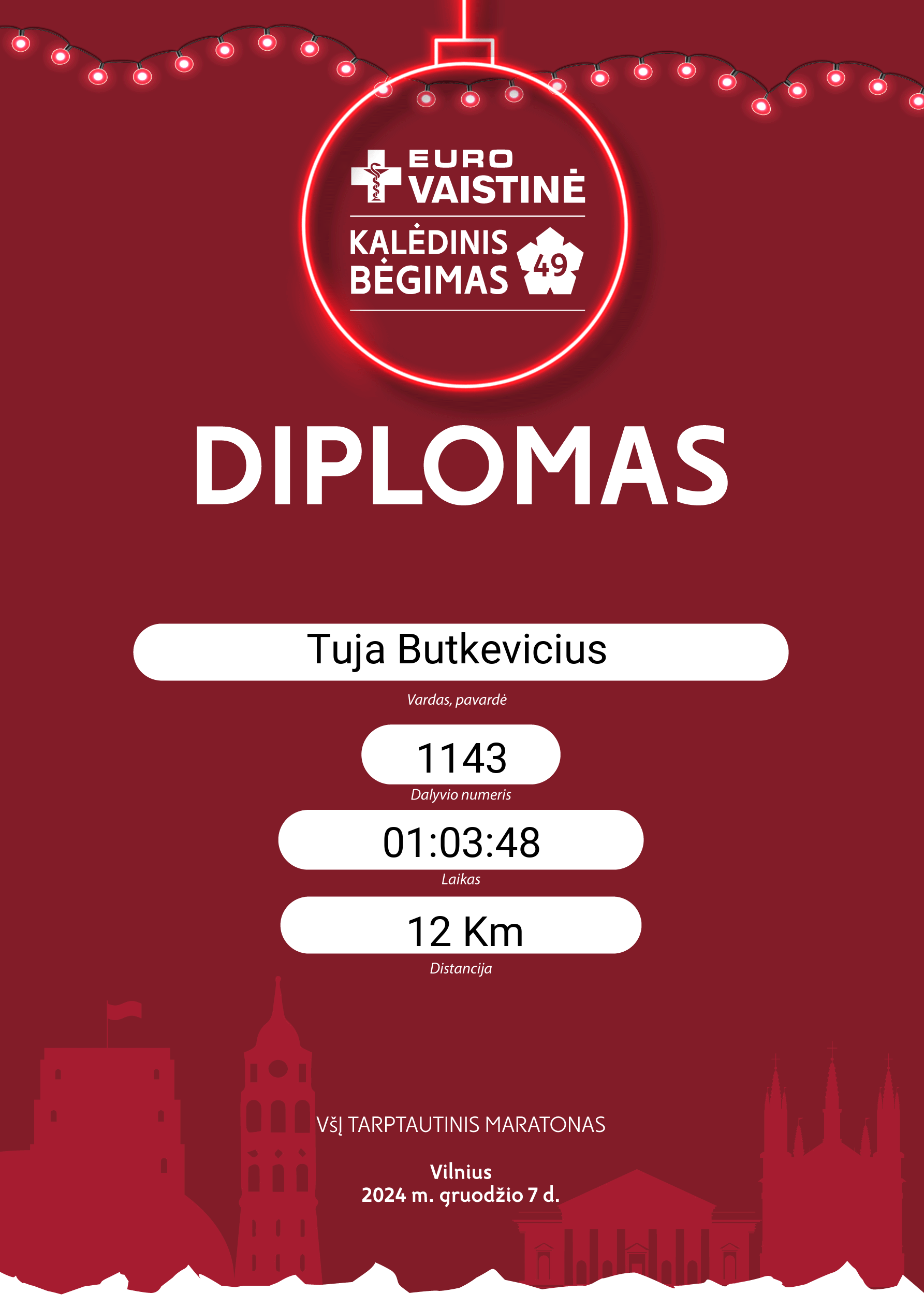 | 36 | Mažvydas Peleckas | LoveStreamsRunning | 1137 | Lithuania | 12 Km | 00:48:26 | Diplomas |