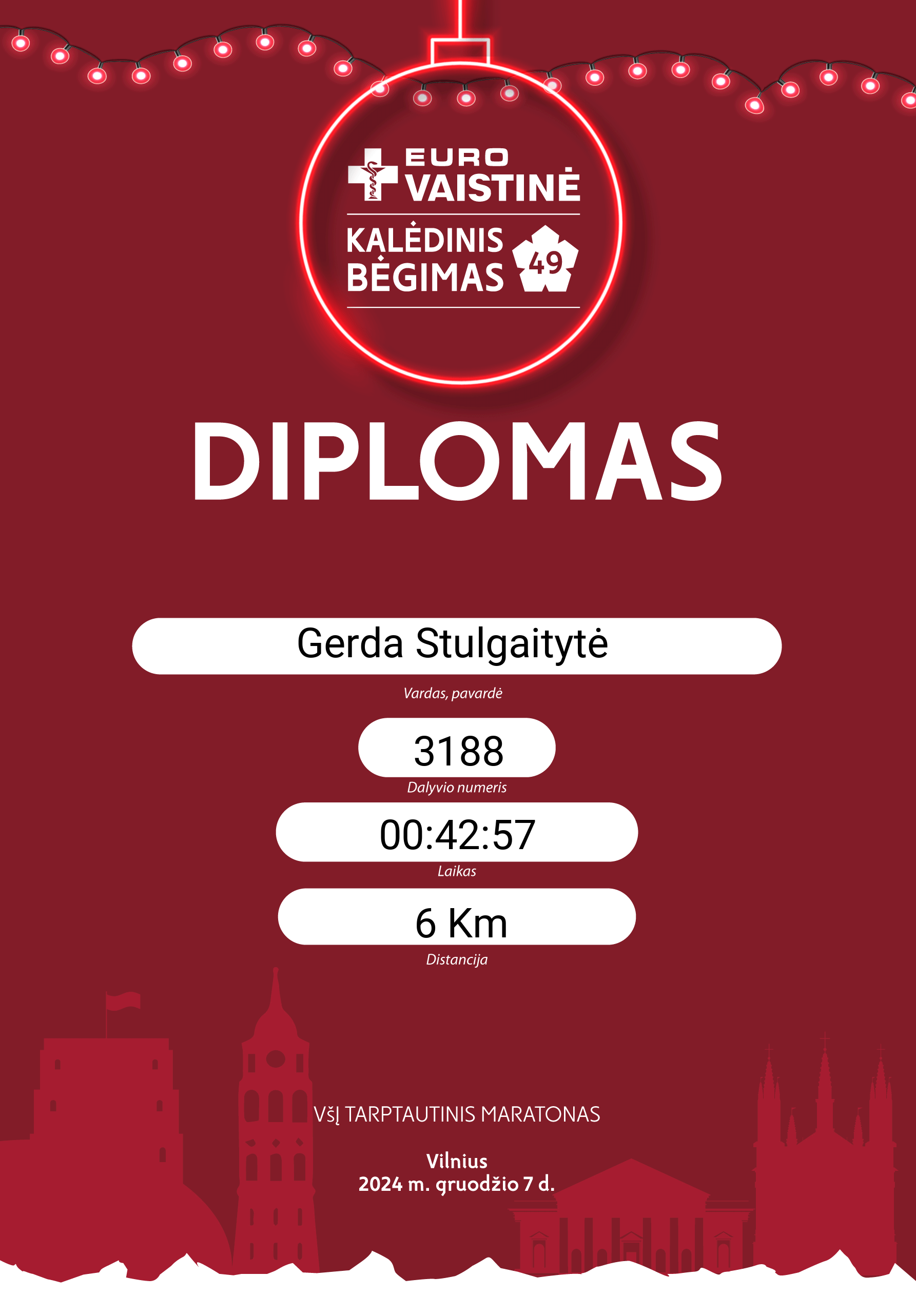 | 748 | Gerda Stulgaitytė | 3188 | Lithuania | 6 Km | 00:42:57 | Diplomas | |