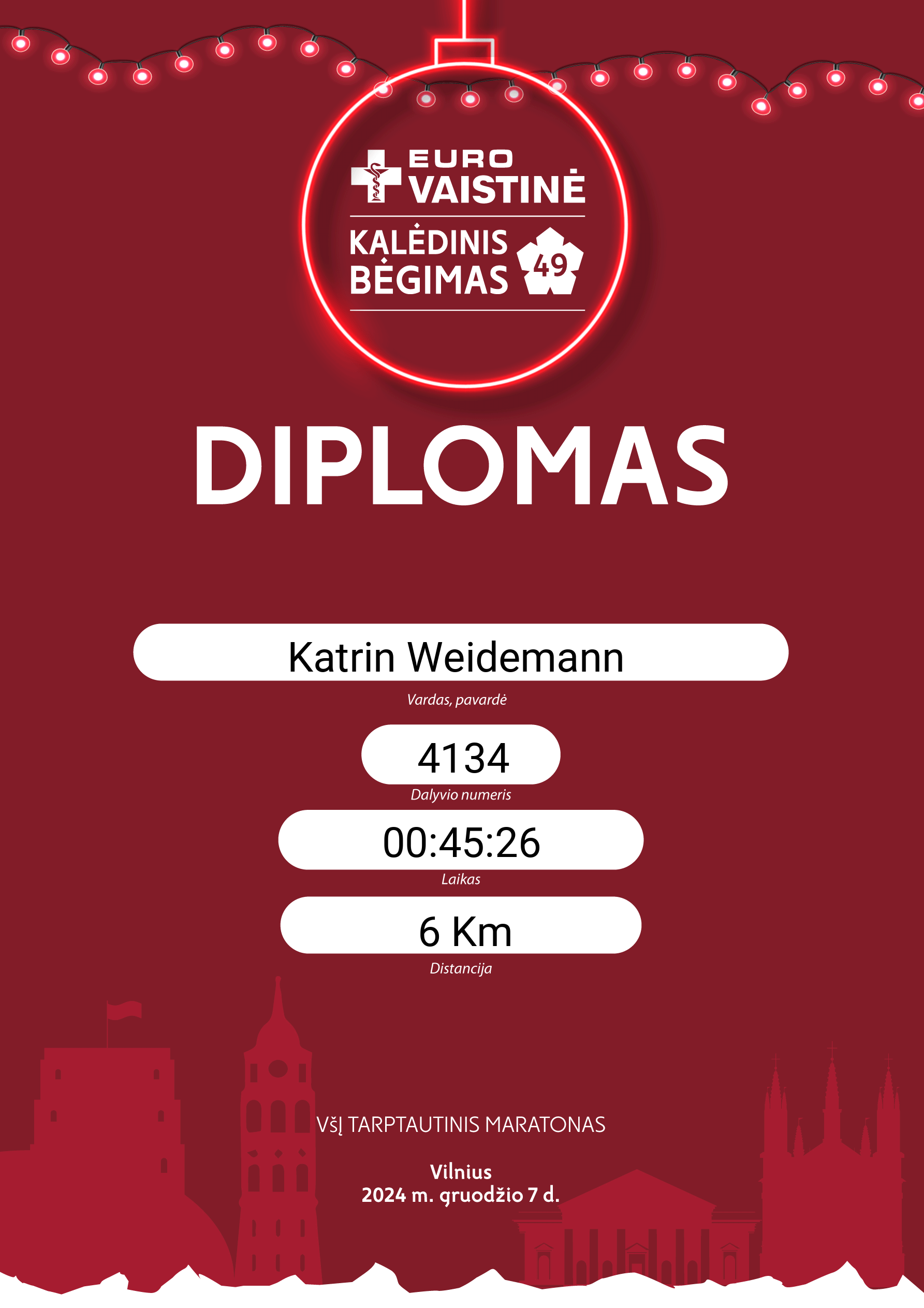 | 811 | Katrin Weidemann | 4134 | Lithuania | 6 Km | 00:45:26 | Diplomas | |