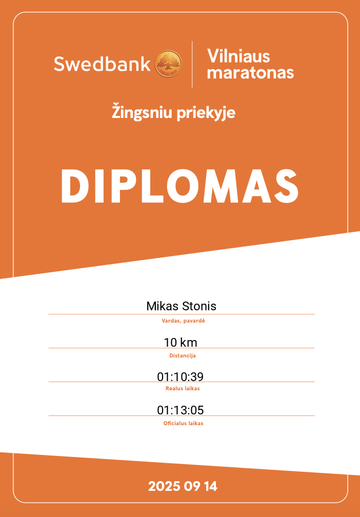 | 973 | Mindaugas Juodviršis | 1289 | Lithuania | „Swedbank“ Maratonas | 04:18:35 | Diplomas | |