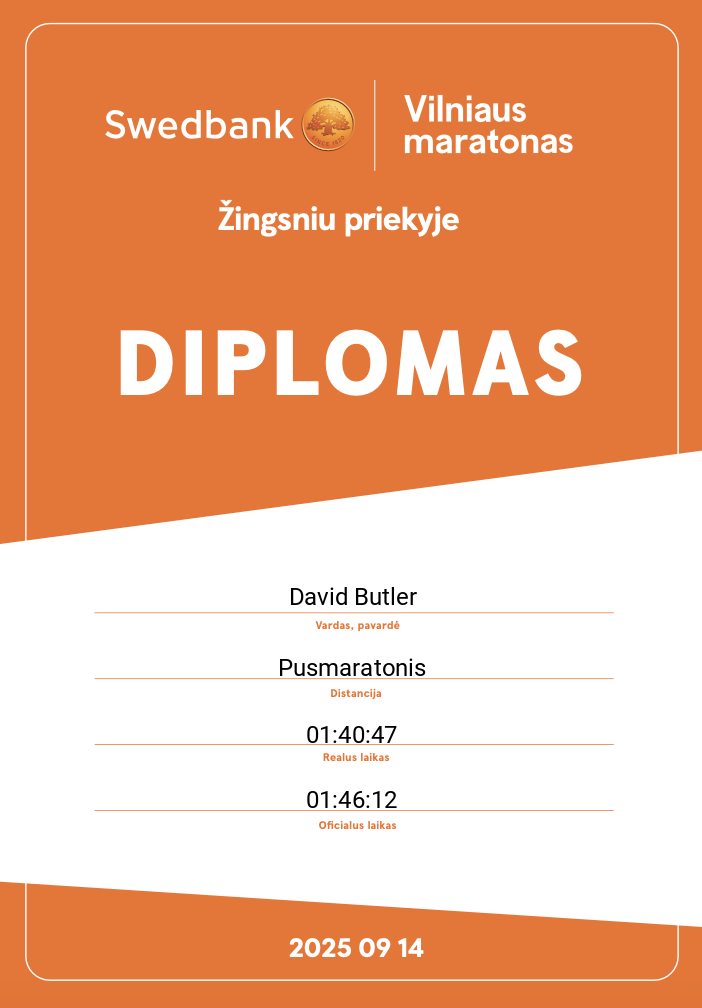| 522 | David Butler | 10722 | Italy | Pusmaratonis | 01:46:12 | Diplomas | |