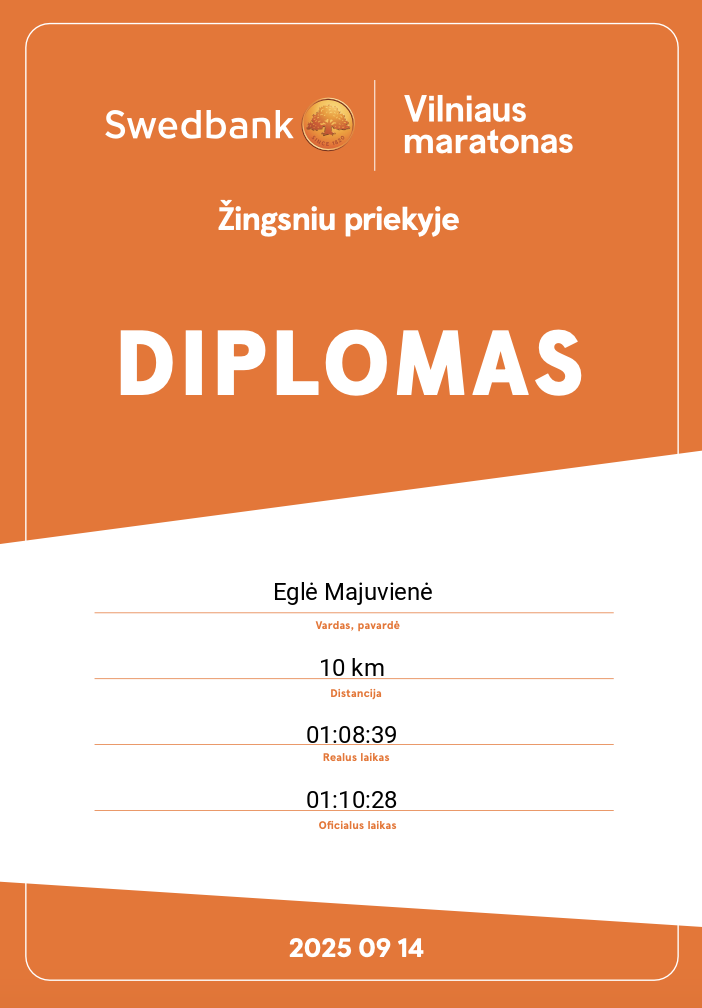 | 2031 | Eglė Simonaitytė | SRP Projektas | 21128 | Lithuania | 10 km | 01:17:25 | Diplomas |