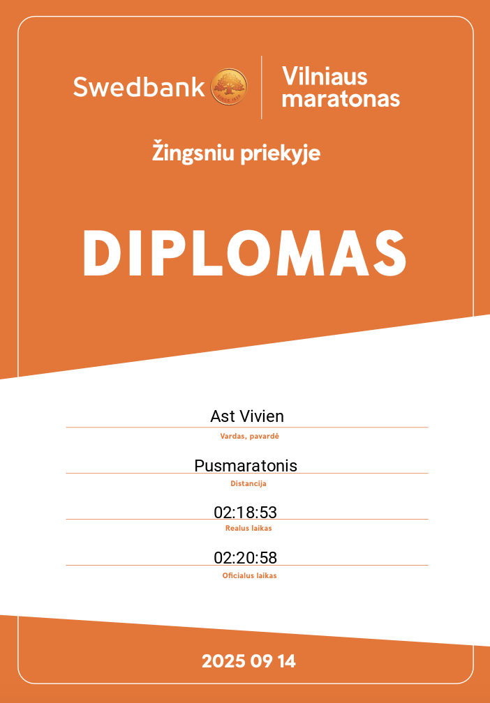 | 2262 | Ast Vivien | 11060 | Lithuania | Pusmaratonis | 02:20:58 | Diplomas | |