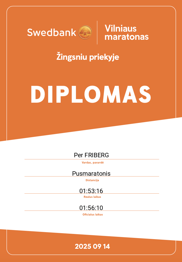 | 1008 | Per FRIBERG | FatBetty.Run | 11254 | Sweden | Pusmaratonis | 01:56:10 | Diplomas |