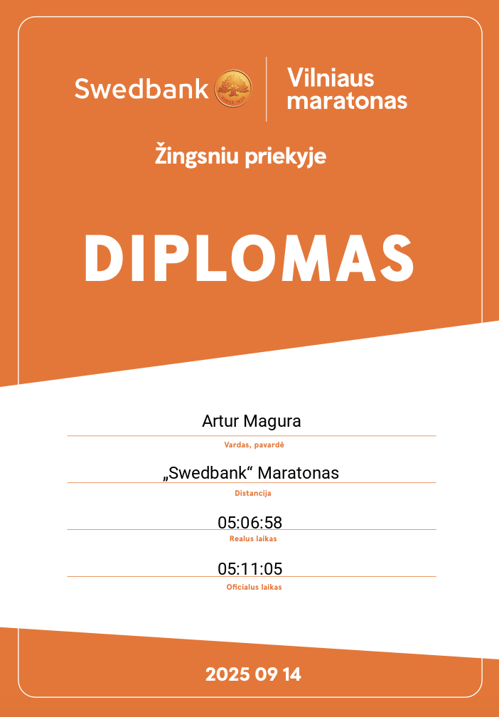 | 311 | Henrikas Zaksas | 457 | Lithuania | „Swedbank“ Maratonas | 03:35:04 | Diplomas | |
