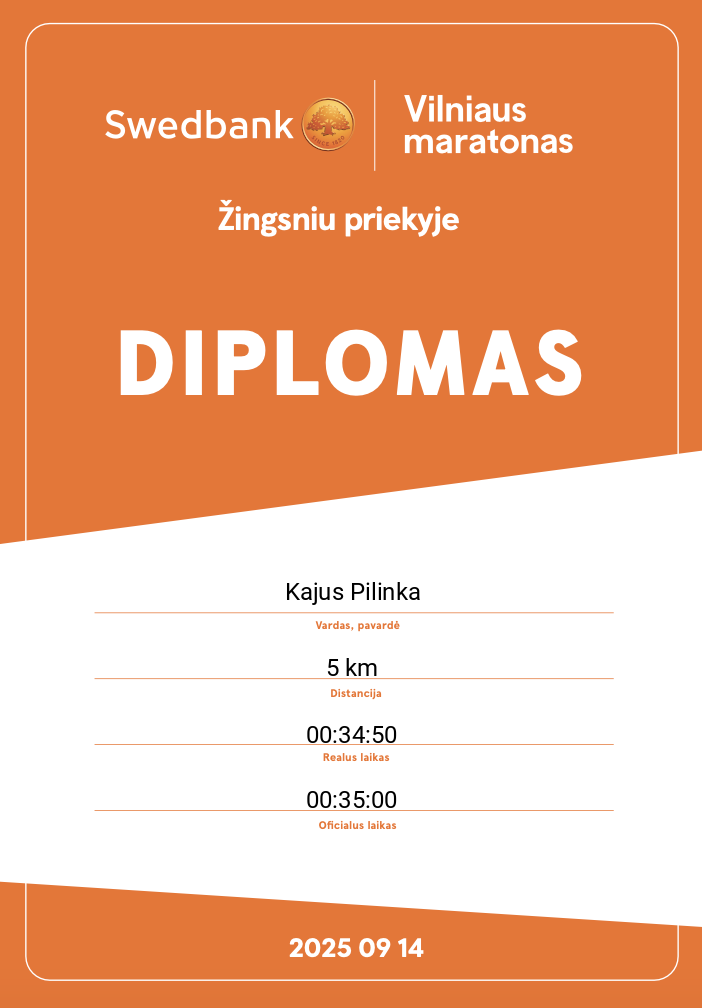 | 1502 | Kajus Pilinka | 30831 | Lithuania | 5 km | 00:35:00 | Diplomas | |